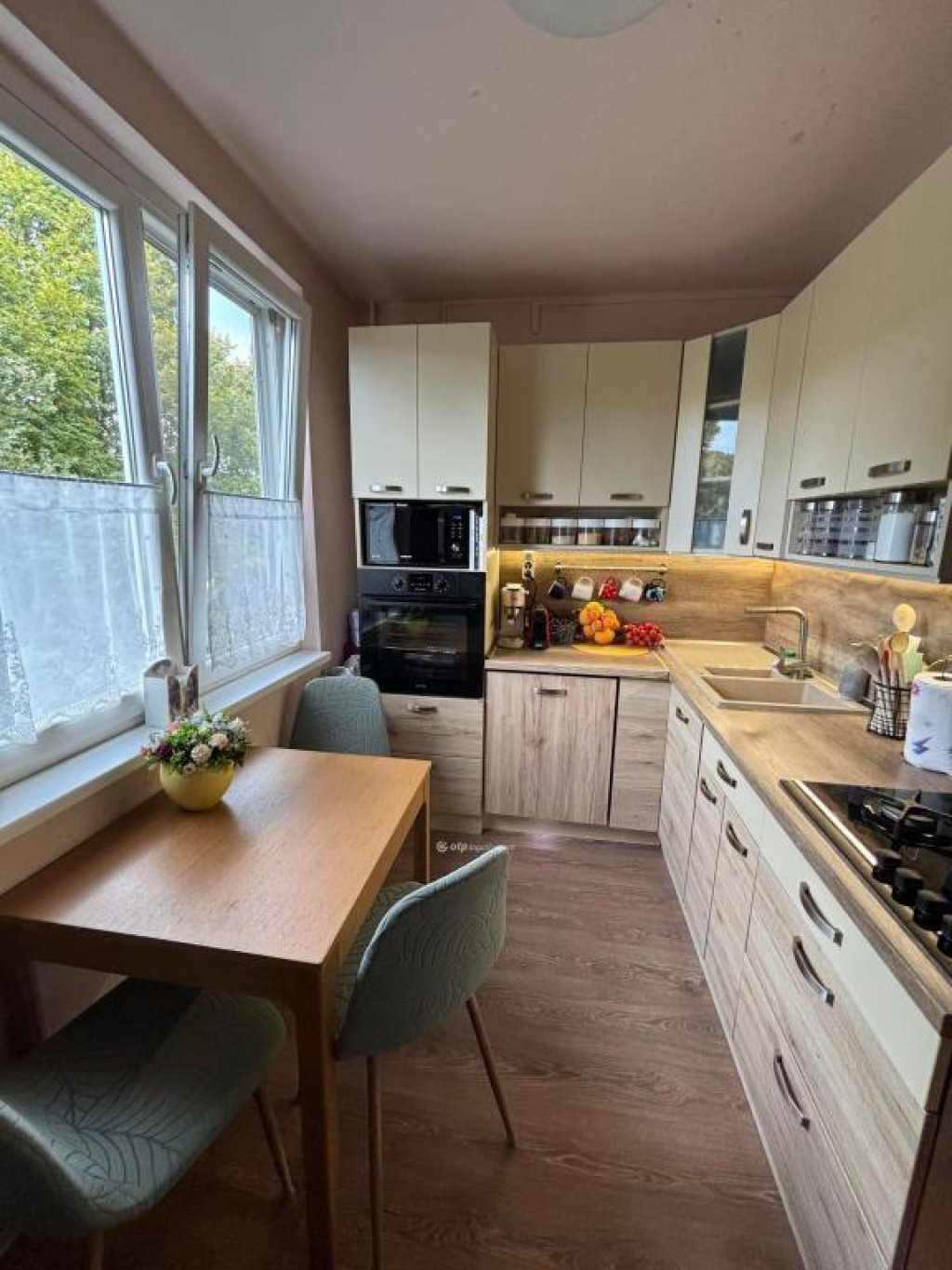 Miskolcon Újgyőri főtér közelében, 55 nm-es, 2 szobás + erkélyes, felújított lakás 4 emeletes panelépület 2. emeletén eladó. A lakás elosztása praktikus, két külön nyíló szobával, világos konyhával, fürdőszobával, gardróbbal és erkéllyel rendelkezik. A konyha 7 éve teljesen fel lett újítva, modern bútorzattal és gázfőzőlappal felszerelve. Öt éve a beltéri ajtók cseréje is megtörtént, a távfűtéses lakásban nyáron klíma biztosítja a kellemes hőmérsékletet. A nyílászárók műanyag szerkezetűek, redőnnyel és szúnyoghálóval ellátva. A lakáshoz közös pincerész, valamint babakocsi- és kerékpártároló is tartozik. A ház rendezett, a környék csendes és jól megközelíthető, közelben boltok, iskola, óvoda és buszmegálló található. A lakás ideális választás fiatal pároknak, idősebbeknek vagy befektetőknek egyaránt!