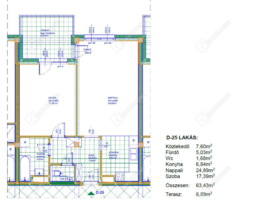 - Lakások Paraméterei: Nappali + 1 szoba 63m2-en, Nappali + 2 szoba 77 m2-en, Nappali + 2 szoba 100 m2-en 33 m2-es terasszal. Minden lakáshoz nagy alapterületű félig nyitott, félig zárt erkély tartozik, a földszinti lakások pedig kertkapcsolatosak.