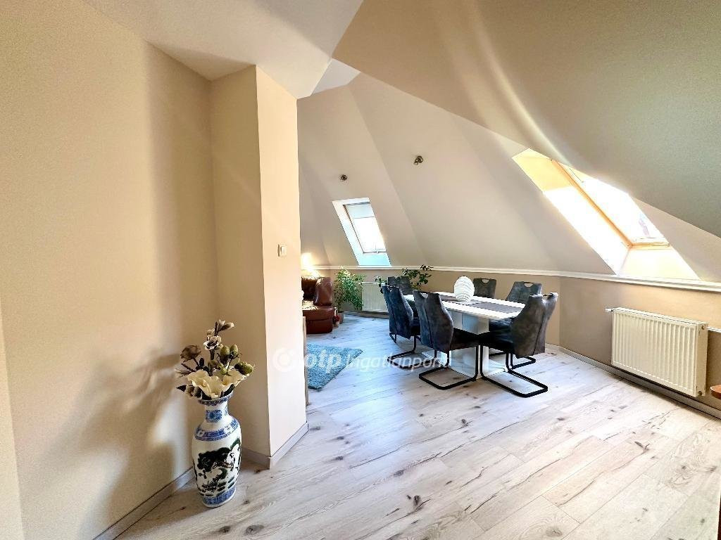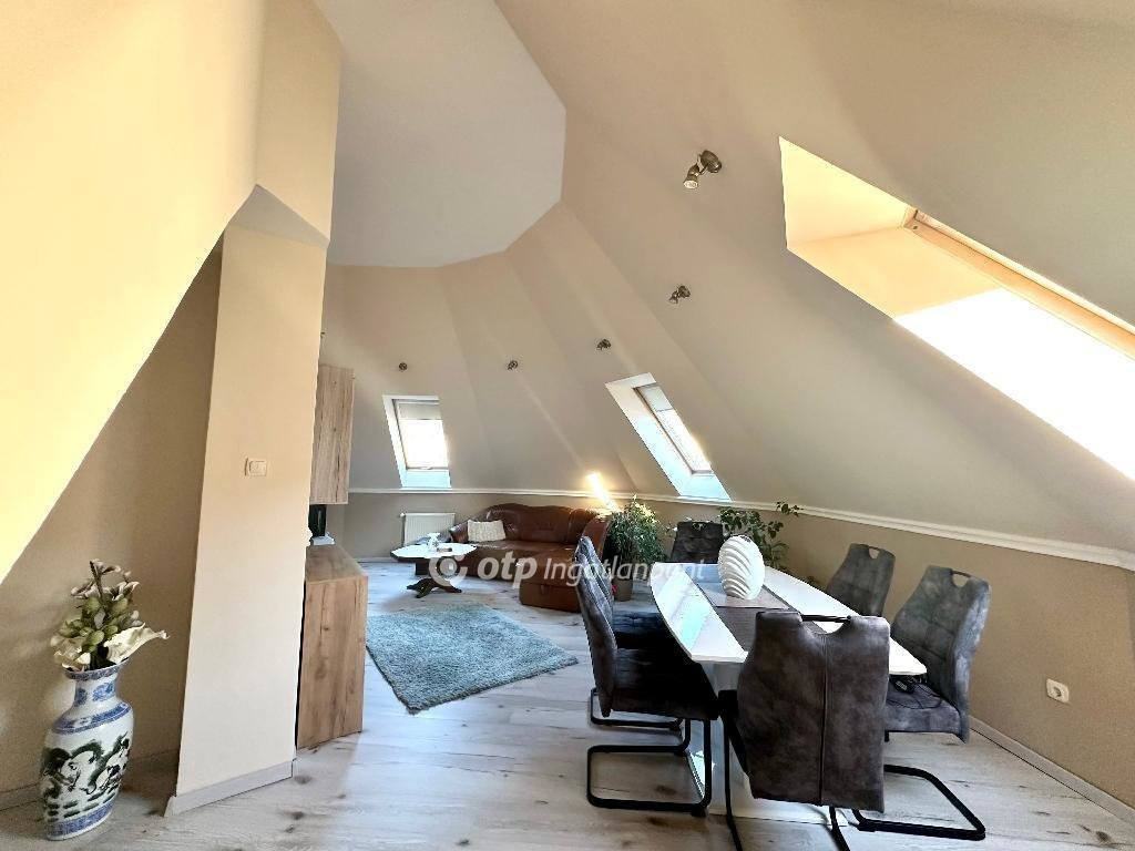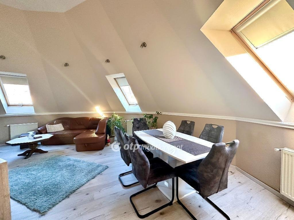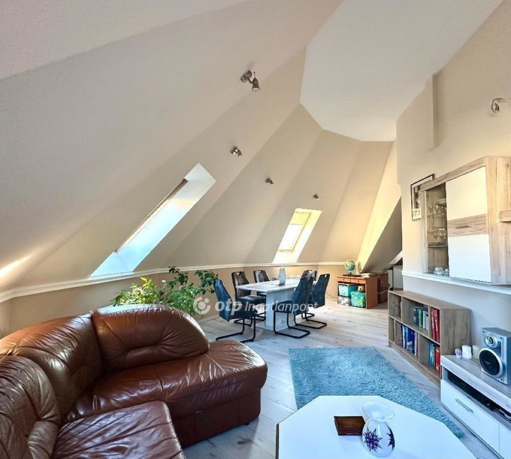 Miskolc egyik központi, mégis nyugodt részén, a Dayka Gábor utcában eladó egy 3. emeleti, tégla építésű lakás, amely hivatalosan 67m2, azonban a tetőtéri kialakításának köszönhetően valójában 89m2 hasznos alapterülettel rendelkezik. A nagy dőlésszögű falak és az épület kupolaalakzatának köszönhetően a lakásnak egyedi hangulata van - barátságos, világos terek jellemzik.