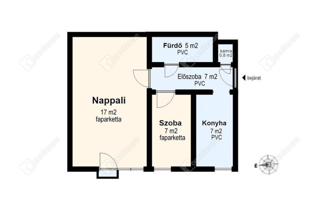 - a szobákban faparketta, a többi helyiségben PVC burkolat