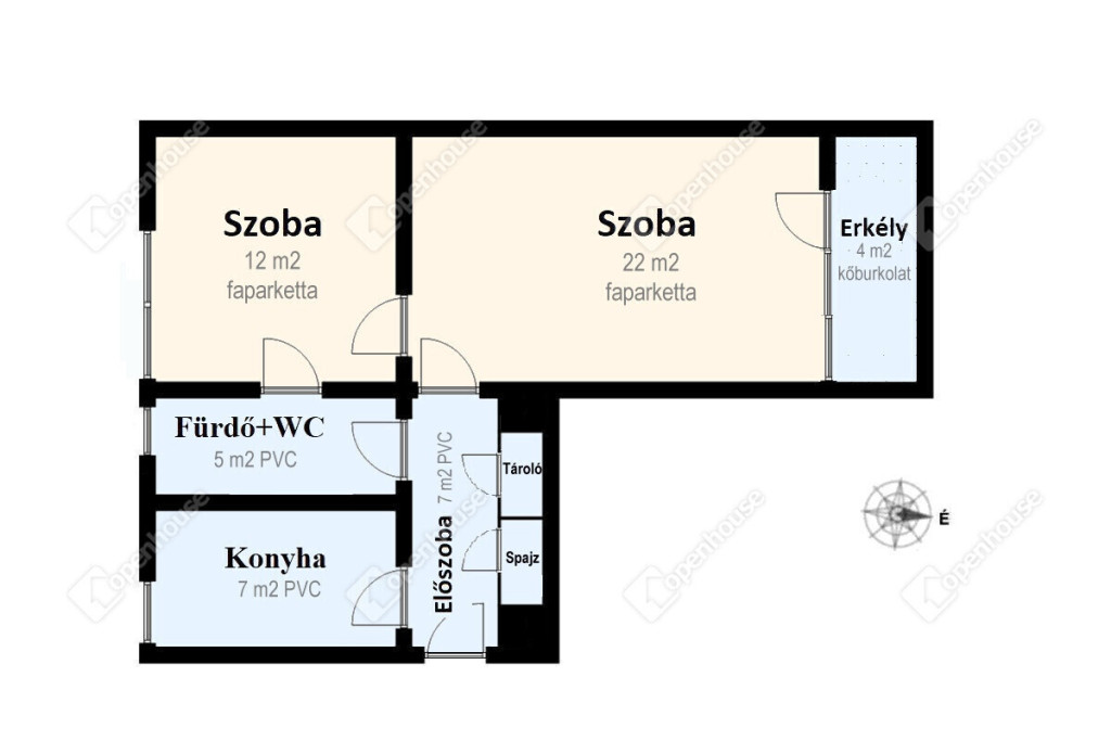 - a szobák eredeti, jó állapotú faparkettásak, míg minden más helyiség PVC-vel burkolt, az erkély kőburkolattal