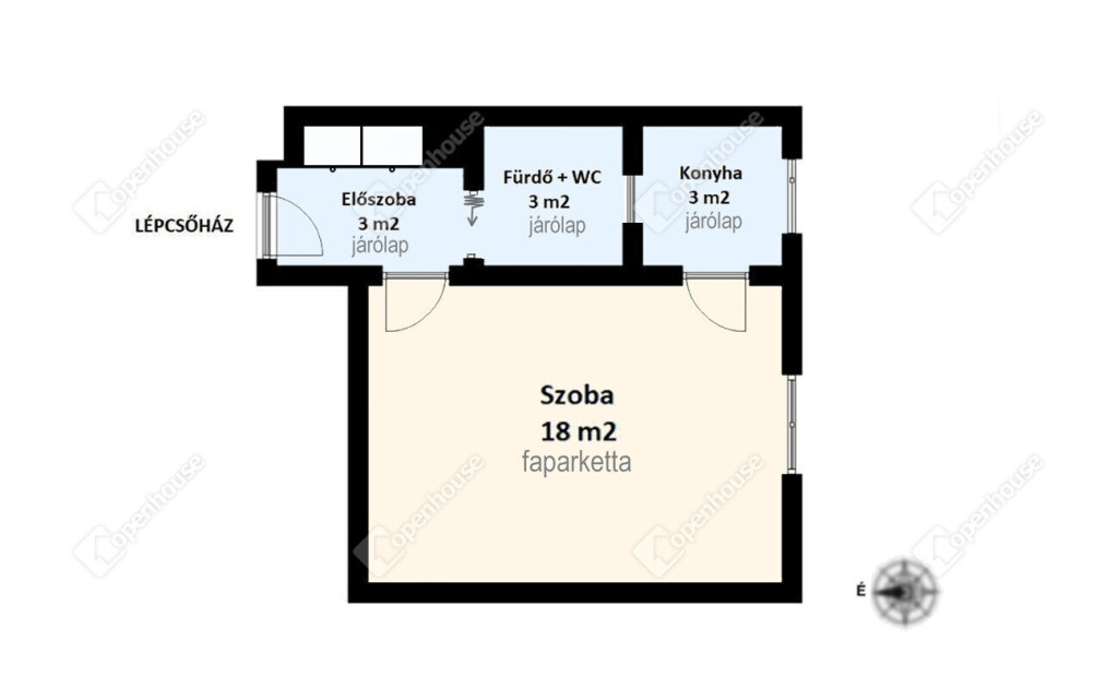 - a szobában jó állapotú parketta padló, a többi helyiségben járólap