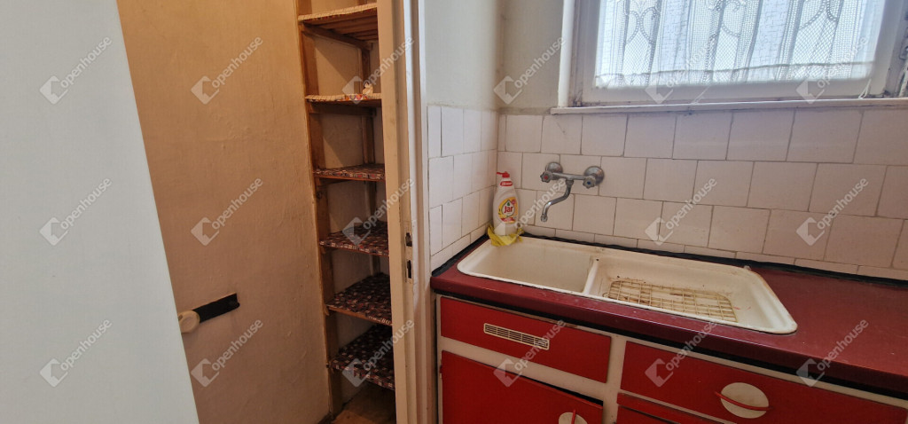 - tároló helységként a konyhában van egy lomos, illetve a fürdőszoba előtti nagy piros ajtós beépitett szekrény használható