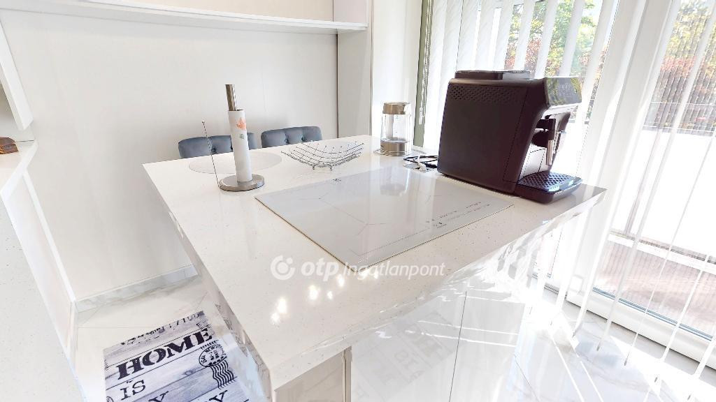 A konyha konyhaszigettel, Electrolux indukciós főzőlappal, beépített sütővel, mikróval, hűtővel és páraelszívóval van felszerelve, valamint AEG mosógép is tartozik hozzá. A teljes bútorzat és háztartási gépek a vételár részét képezik, így az ingatlan azonnal költözhető.