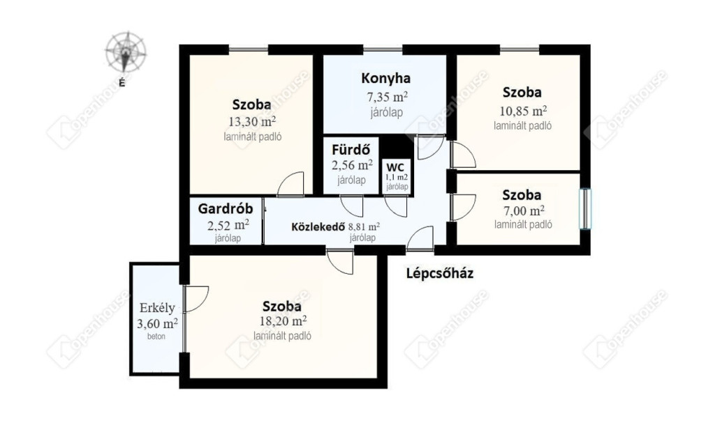 - a szobákban laminált parketta, a többi helyiségben járólap lett lerakva