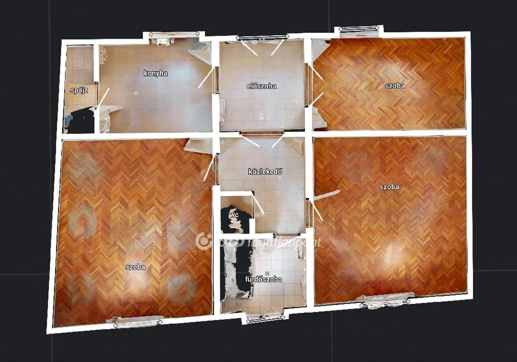 Az ingatlan praktikus elrendezésű: három külön nyíló, világos szoba, fürdőszoba, külön WC, spájz, kényelmes előtér és közlekedő biztosítja a komfortos mindennapokat. A lakás előtt található parkosított, elzárt udvar különleges hangulatot teremt. A lakáshoz tartozik egy 28 nm-es pince is, amely kiváló tárolási lehetőséget biztosít.