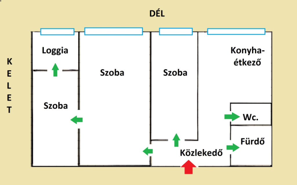 Persze az is sokat jelent, hogy Déli tájolású, így napfényes, ami szintén segíti, az ember jókedvét.