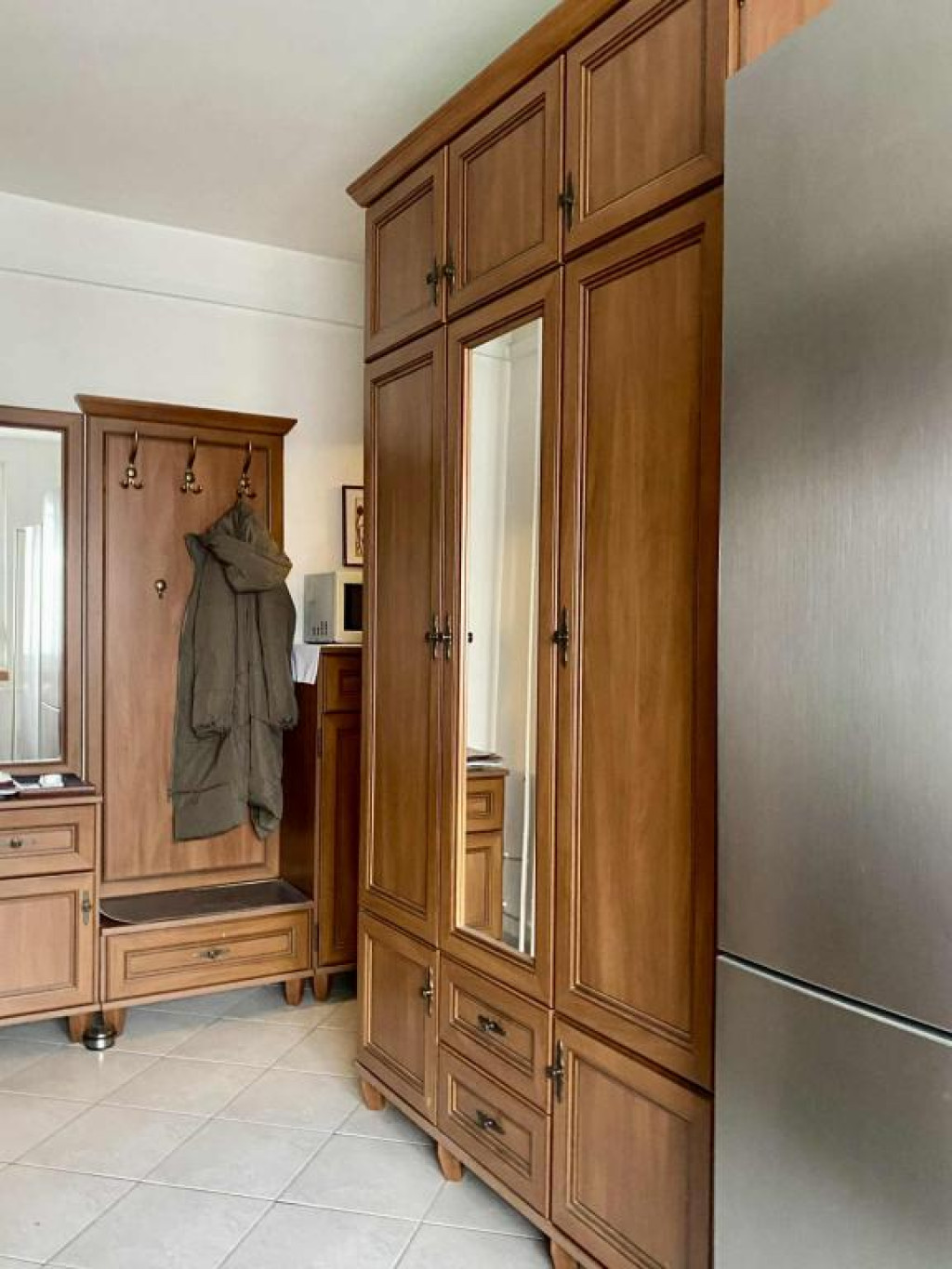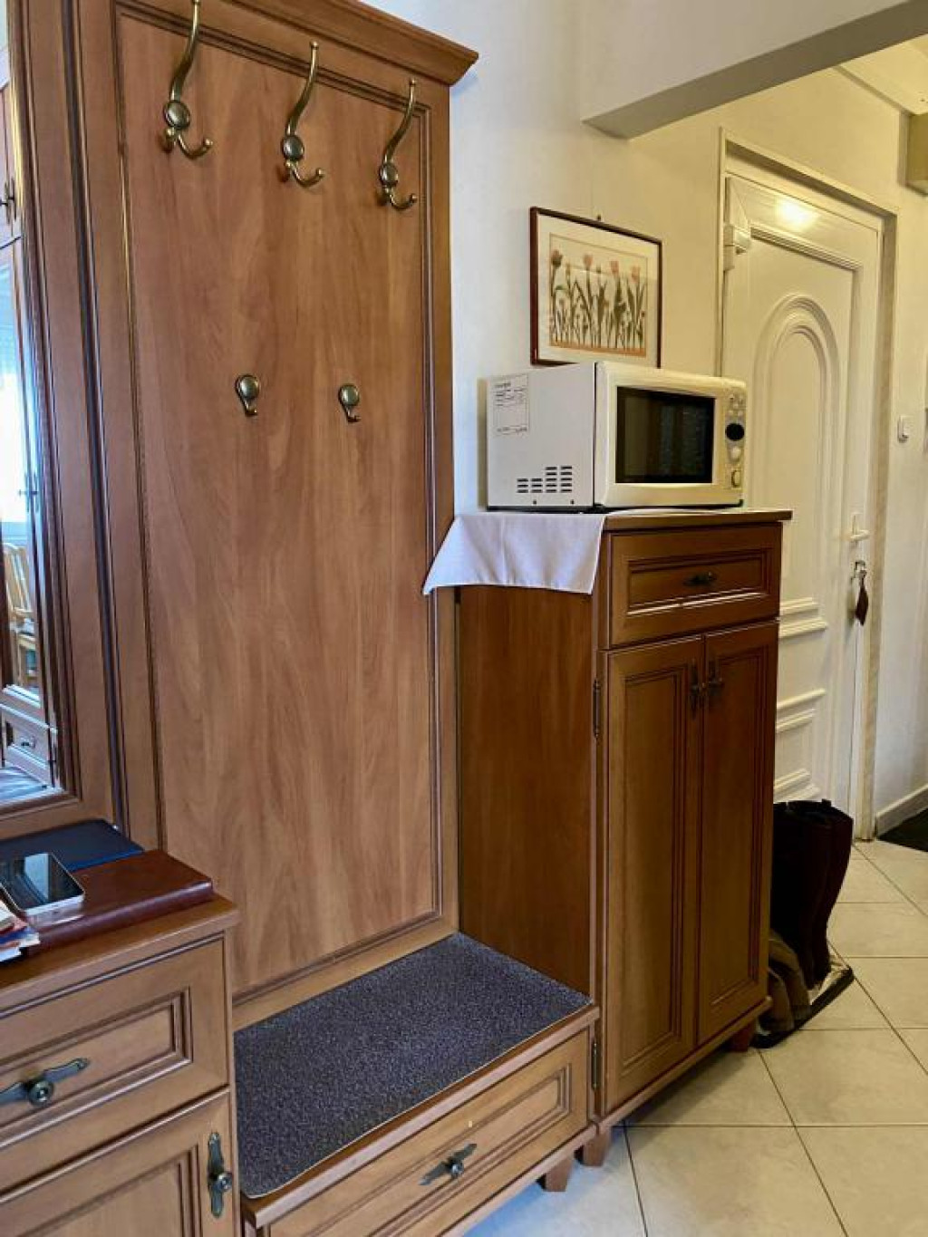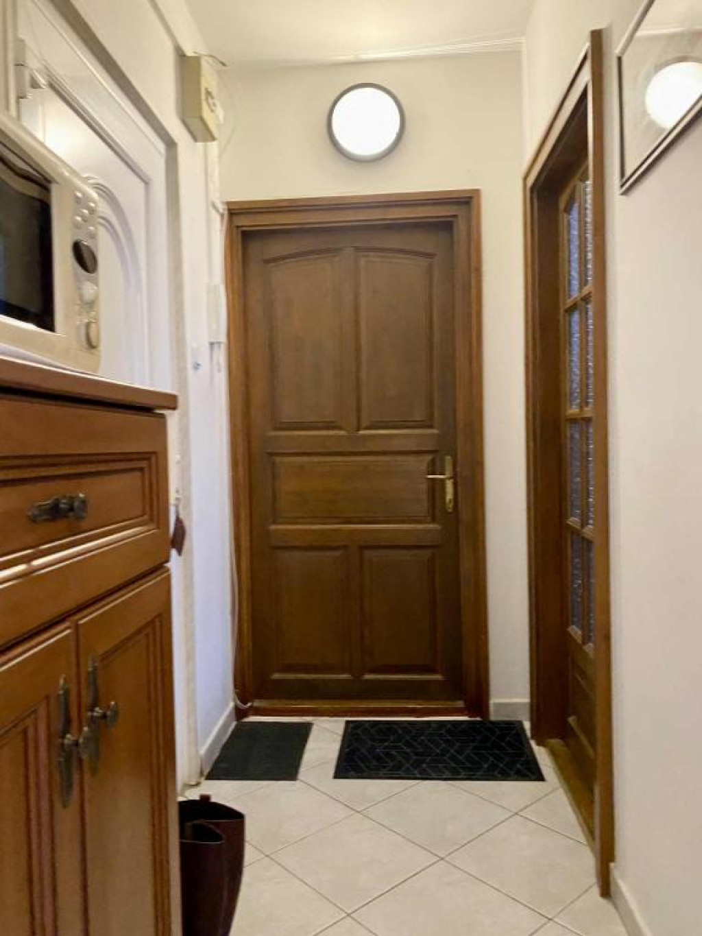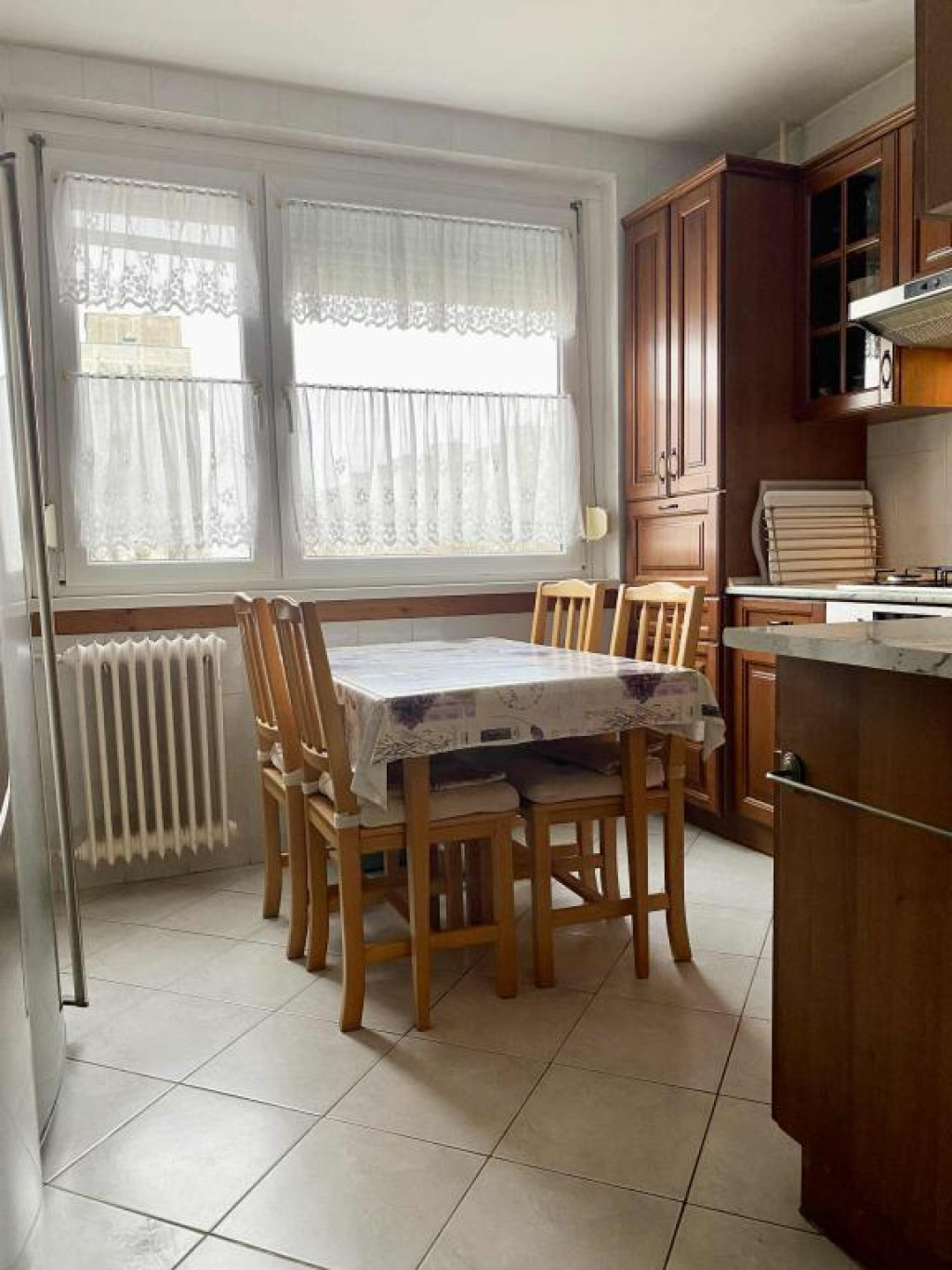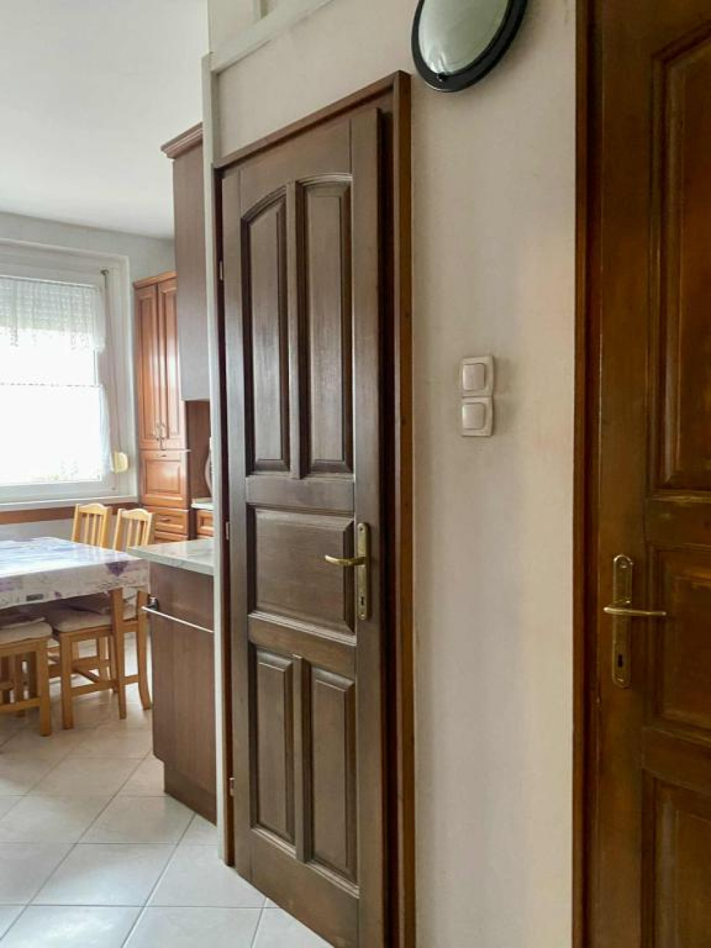 A lakás otthonosságát alapvetően a tömörfa beltéri ajtók, az ezzel harmónizáló beépített konyhabútor adja.
