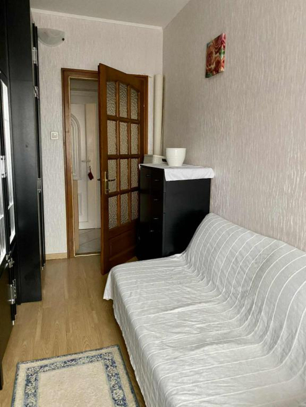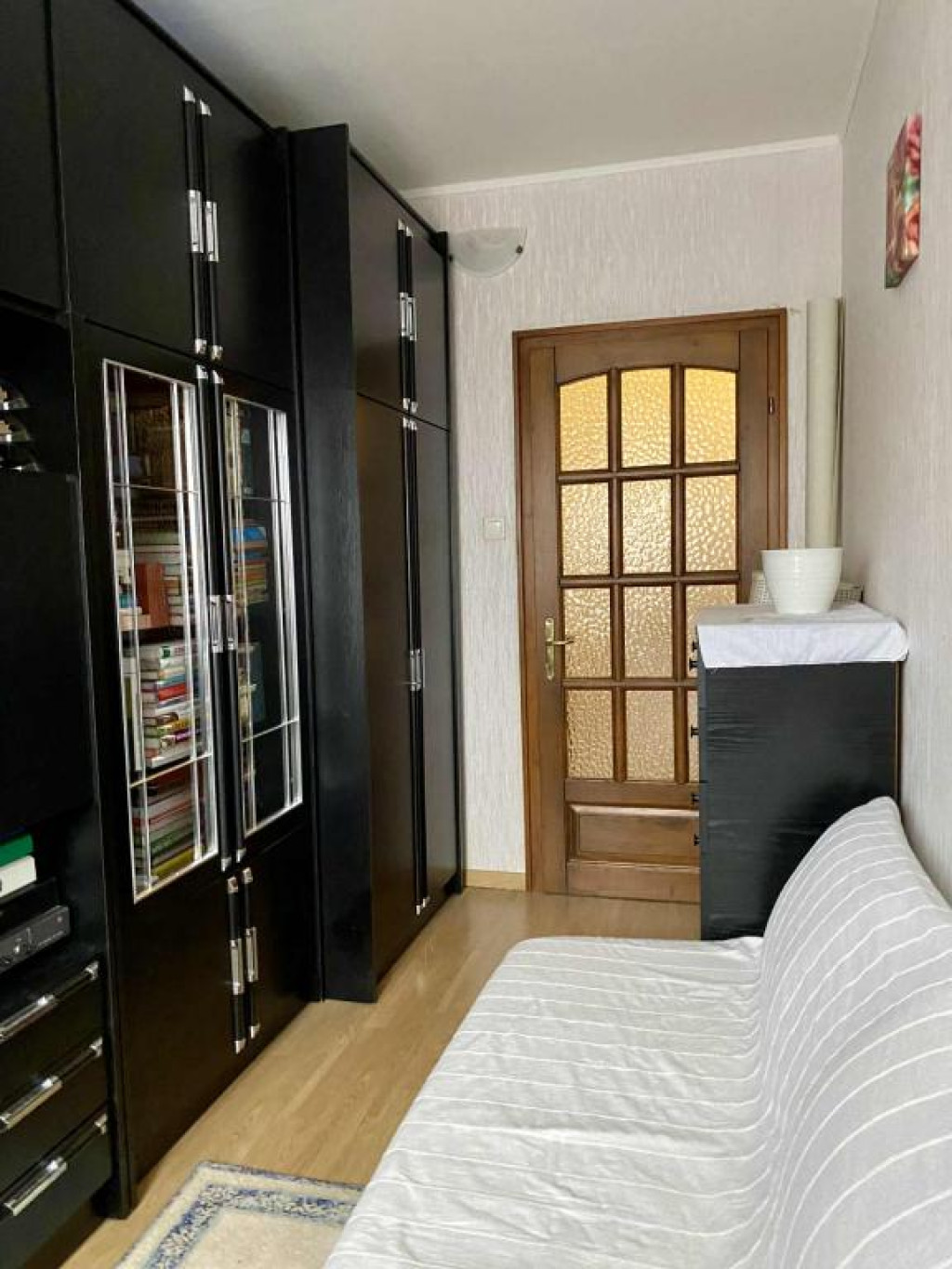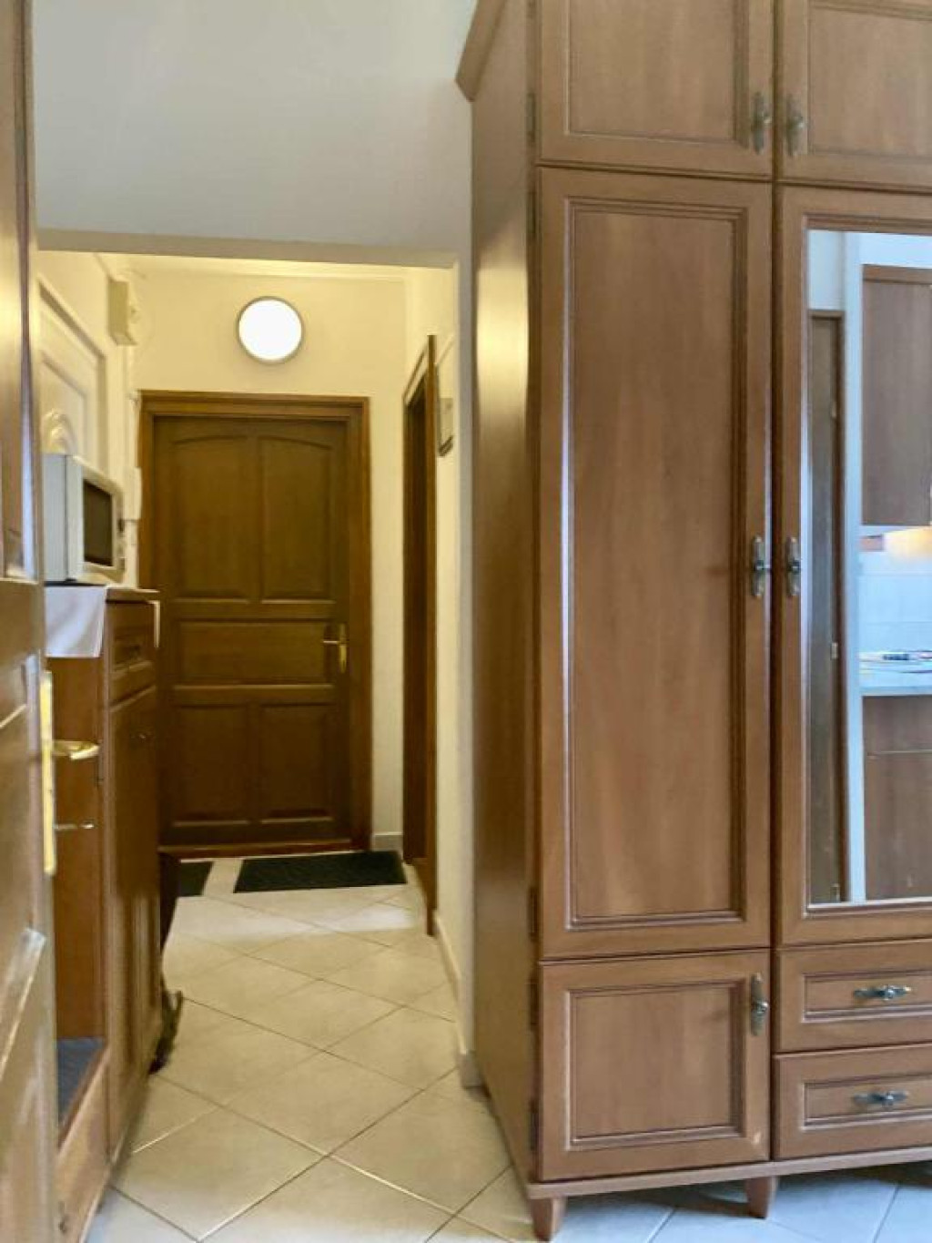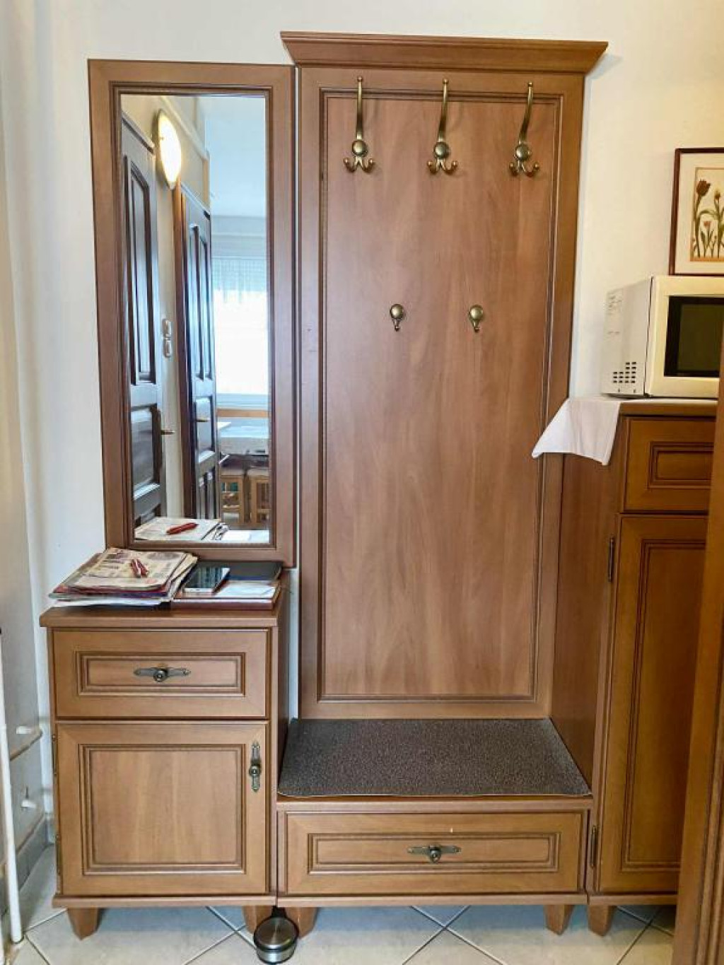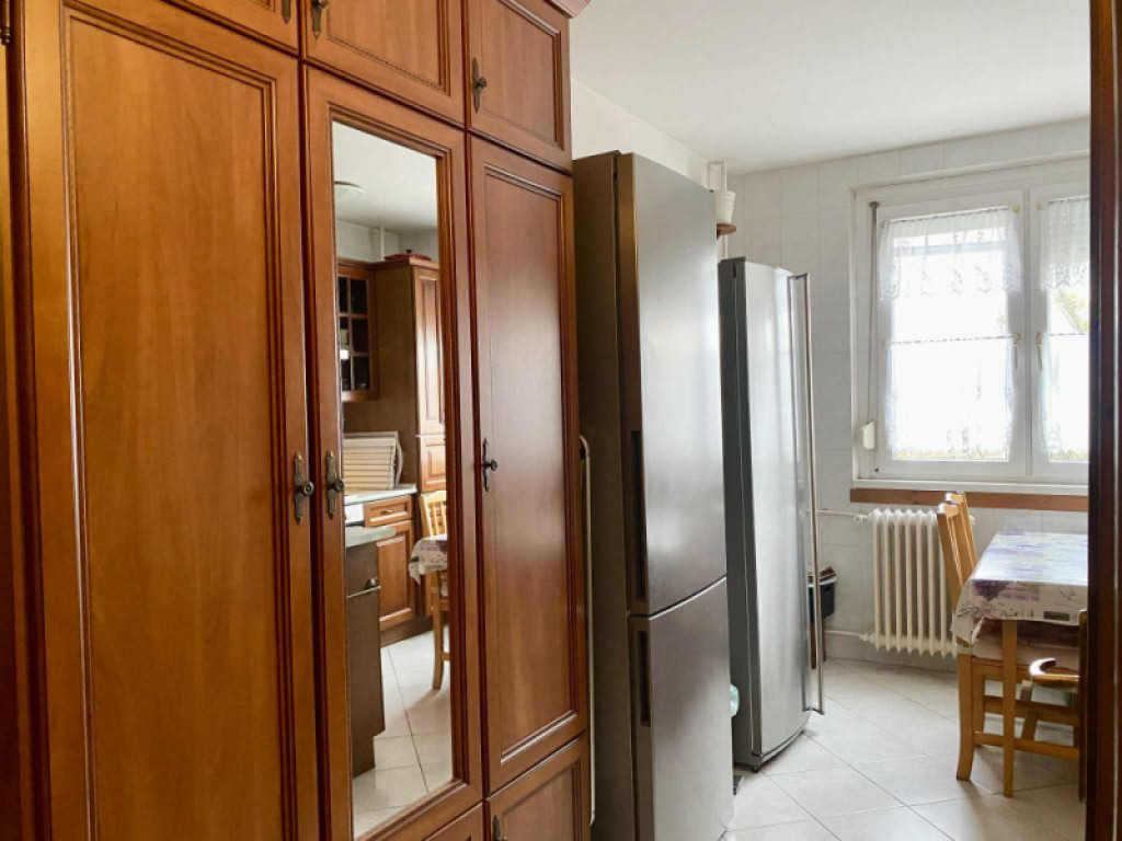 A lakás otthonosságát alapvetően a tömörfa beltéri ajtók, az ezzel harmónizáló beépített konyhabútor adja.