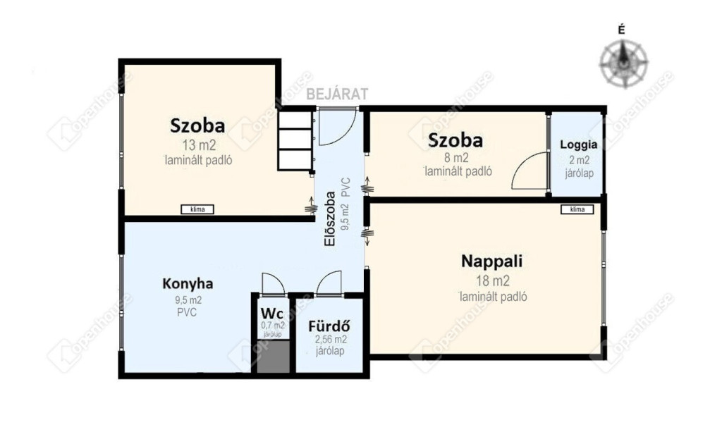 - Nyári melegben hűtő klíma biztosítja a kellemes komfortérzetet 2 szobában is
