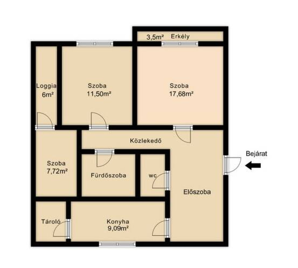 3,5 m² erkéllyel és 6 m² loggiàval.