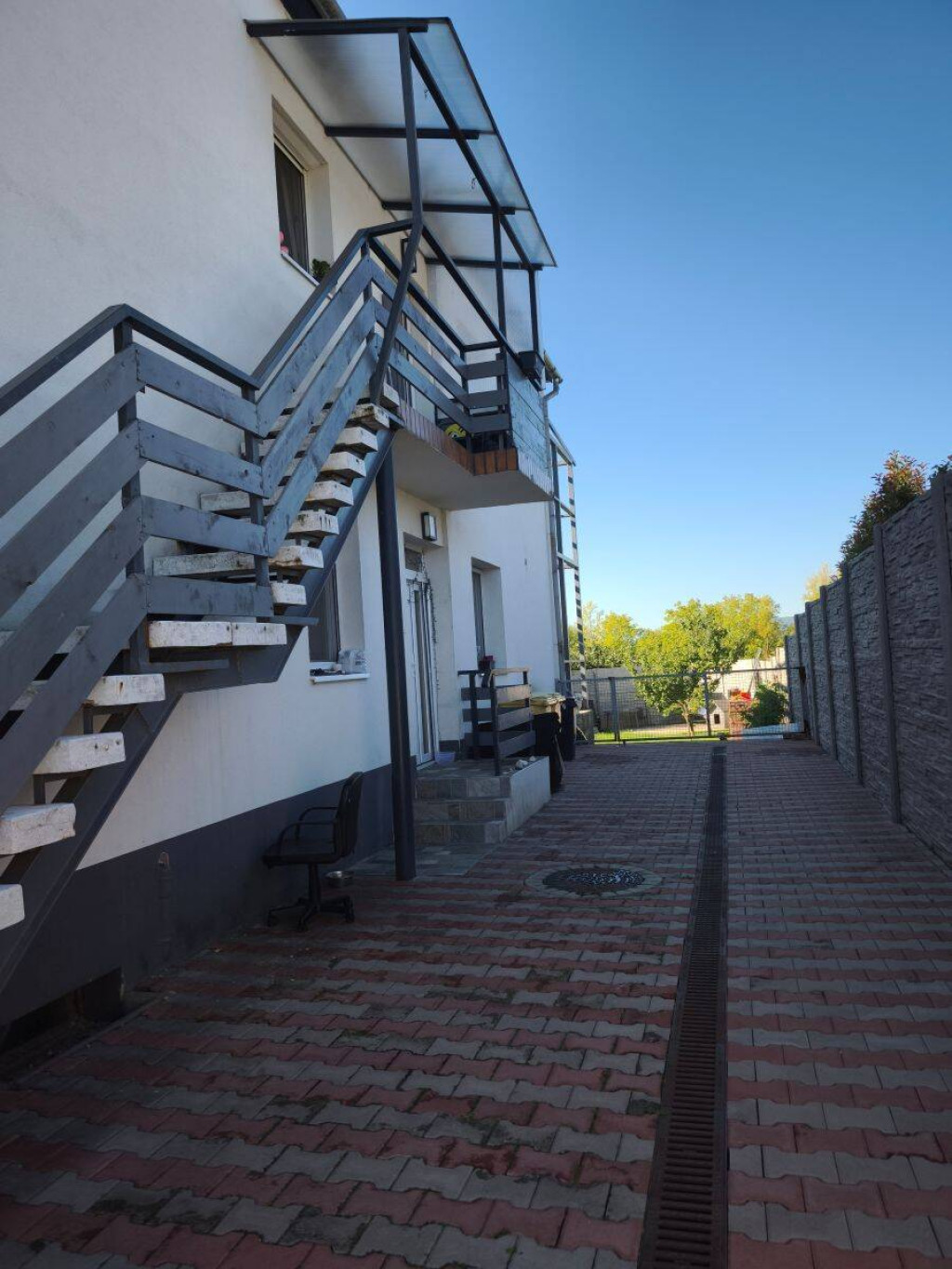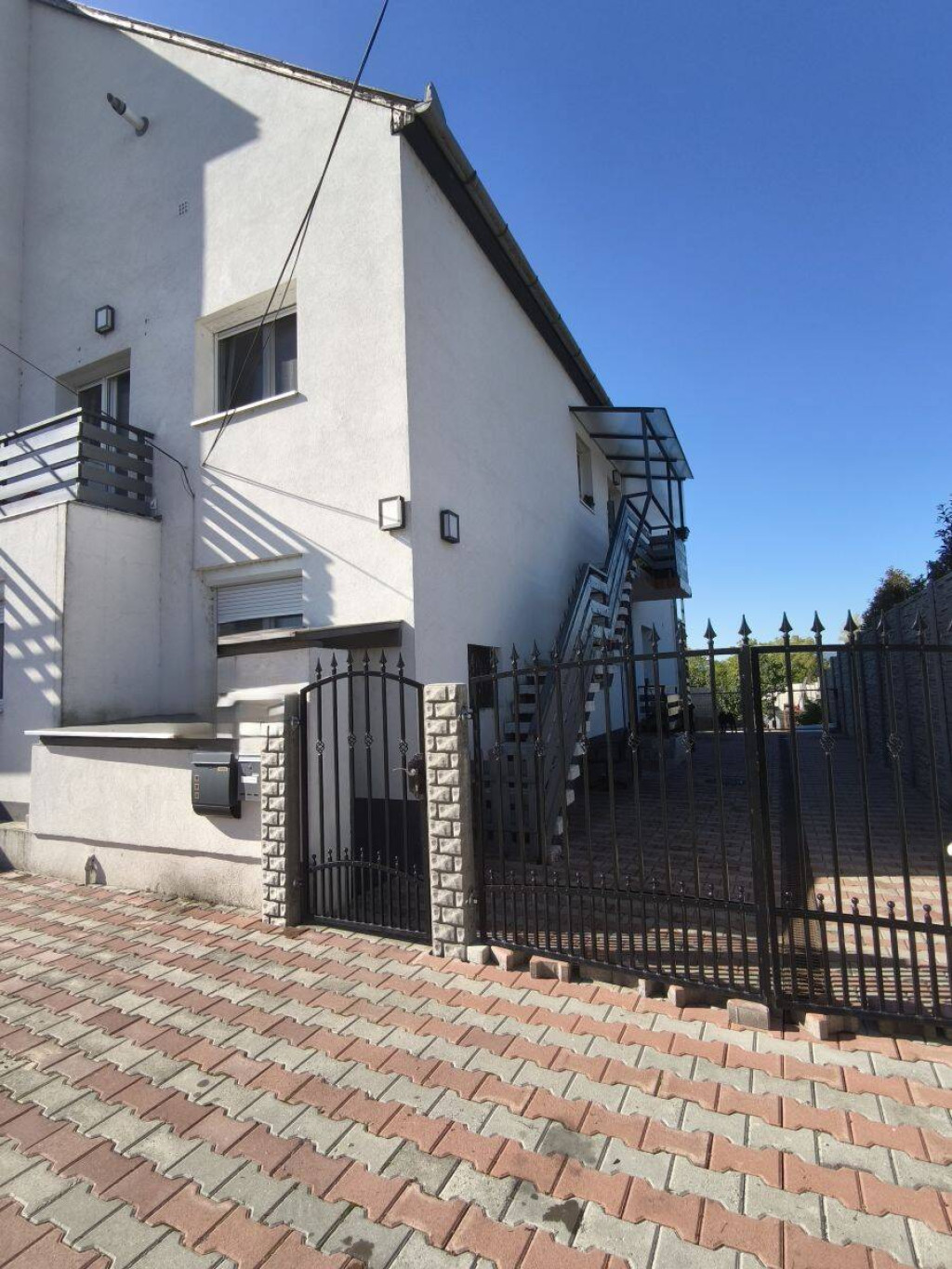 Udvar: térkövezett, parkosított, közösen használható az alsó szinten található lakás tulajdonosával