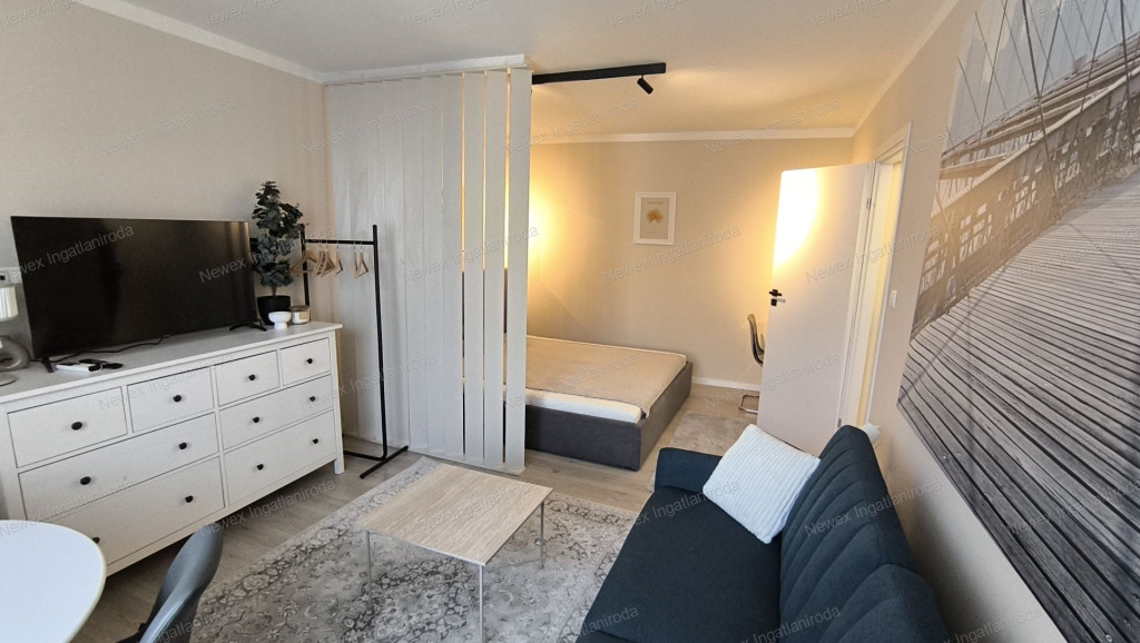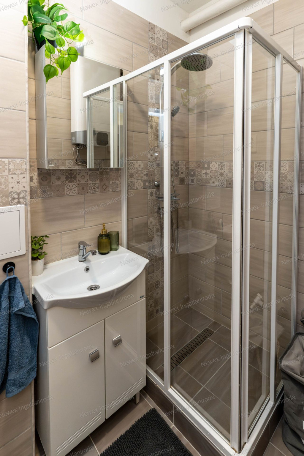 Ebben a felújított modern lakásban, jó elosztásban használhatja a 2 külön hálószekciót, a divatos térelemekkel határolt, de nyitott érzetű nappalit, az igényes zuhanykabinos fürdőszobát, valamint reggeliző sarokkal ellátott, teljesen felszerelt konyhát, az elektromos sütő és főző berendezéseket, a jégadagolós hűtőt, mely a külön nyíló kamrában került elrejtésre.