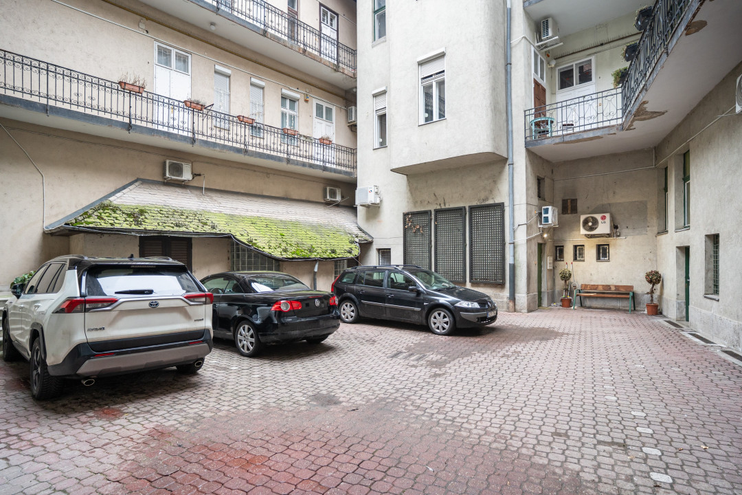 A belvárosi kínálatban különösen nagy értéket képvisel a belső, zárt udvarban található parkolóhely, amely elektromosan, távirányítóval működtethető kapun keresztül közelíthető meg. Ez a megoldás egyszerre biztosít kényelmet és biztonságot – olyan adottság, amely az abszolút belvárosban ritkaságnak számít!