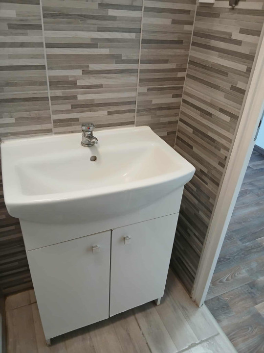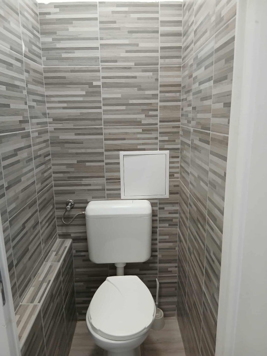 A fürdőszoba és a wc is kompletten lett felújítva. A gépészet teljes cseréje megtörtént. A szaniterek cseréje szintén megtörtént és ízléses fürdőszoba szekrény került beszerelésre tükörrel együtt.