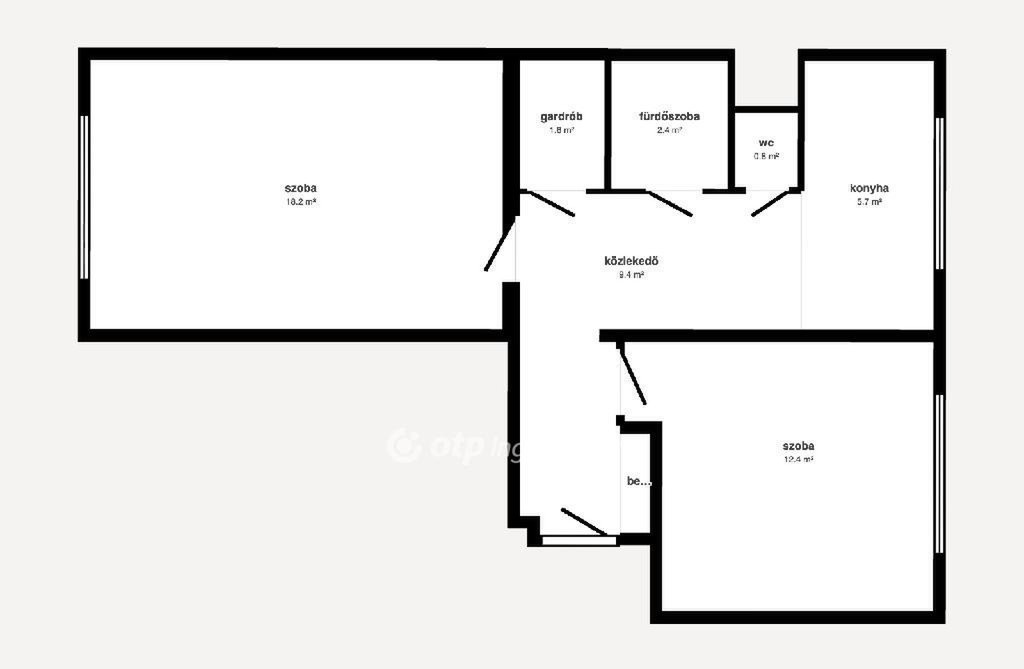 Az ingatlan belső elrendezése rendkívül praktikus és átgondolt. A két különnyíló, napfényes szoba mellett egy dedikált gardróbhelyiség is helyet kapott, így a tárolás kérdése elegánsan megoldott, nem foglalják a helyet felesleges szekrények a lakótérben. A helyiségek elosztása ideális fiatal pároknak, egyedülállóknak, vagy akár egy kisebb család számára is, akik értékelik a tiszta, rendezett környezetet.