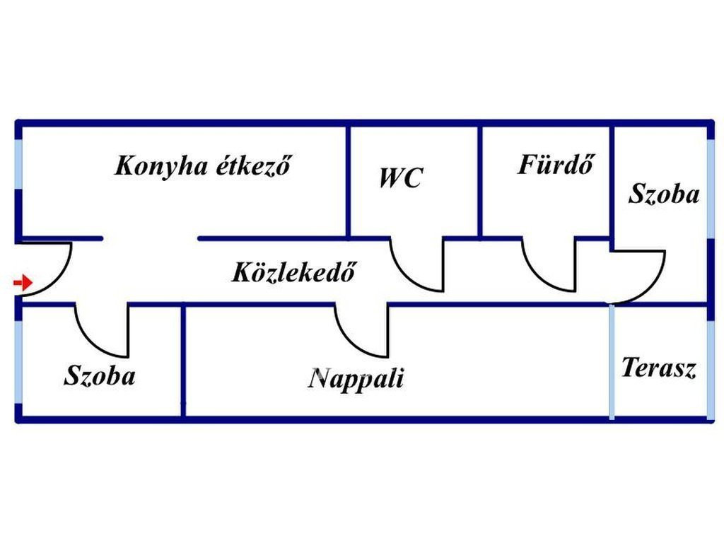 Az 54 m2-es alapterület praktikus elosztású, a három külön nyíló szoba kényelmes életteret biztosít akár családok számára is, de befektetésnek is ideális választás lehet. A földszinti elhelyezkedés különösen előnyös idősebbeknek, kisgyermekes családoknak, illetve azoknak, akik szeretnék elkerülni a lépcsőzést.
