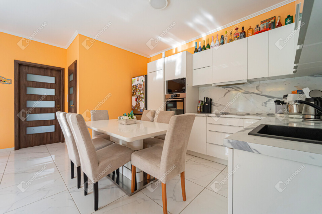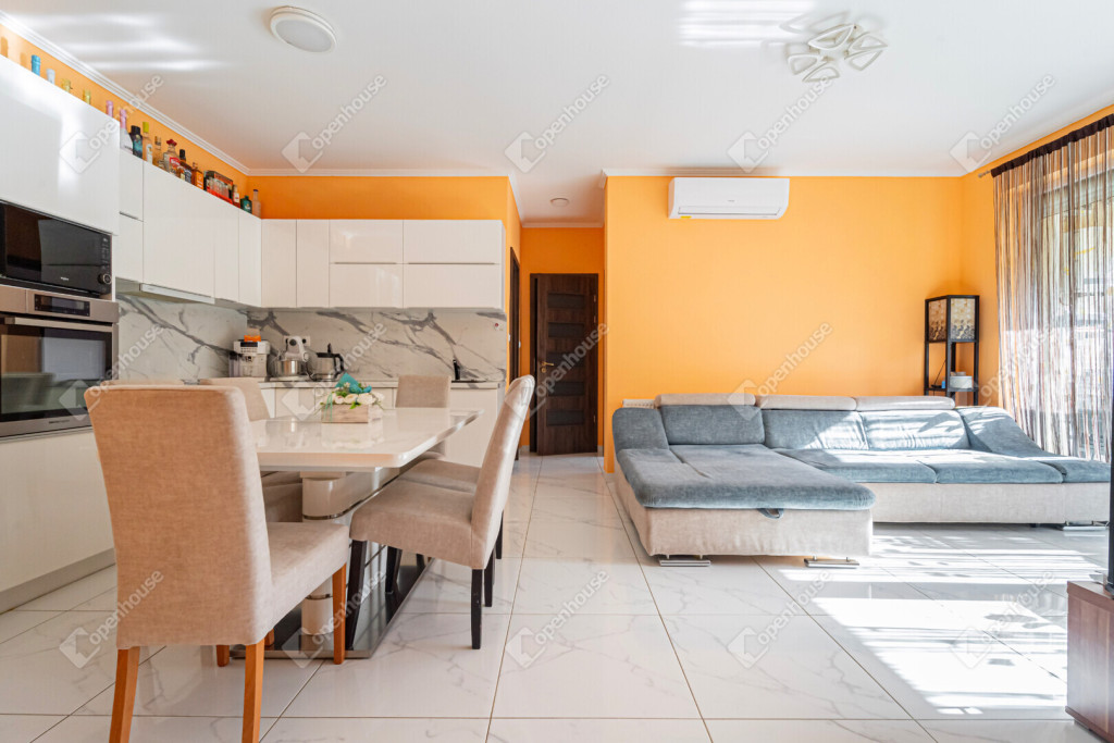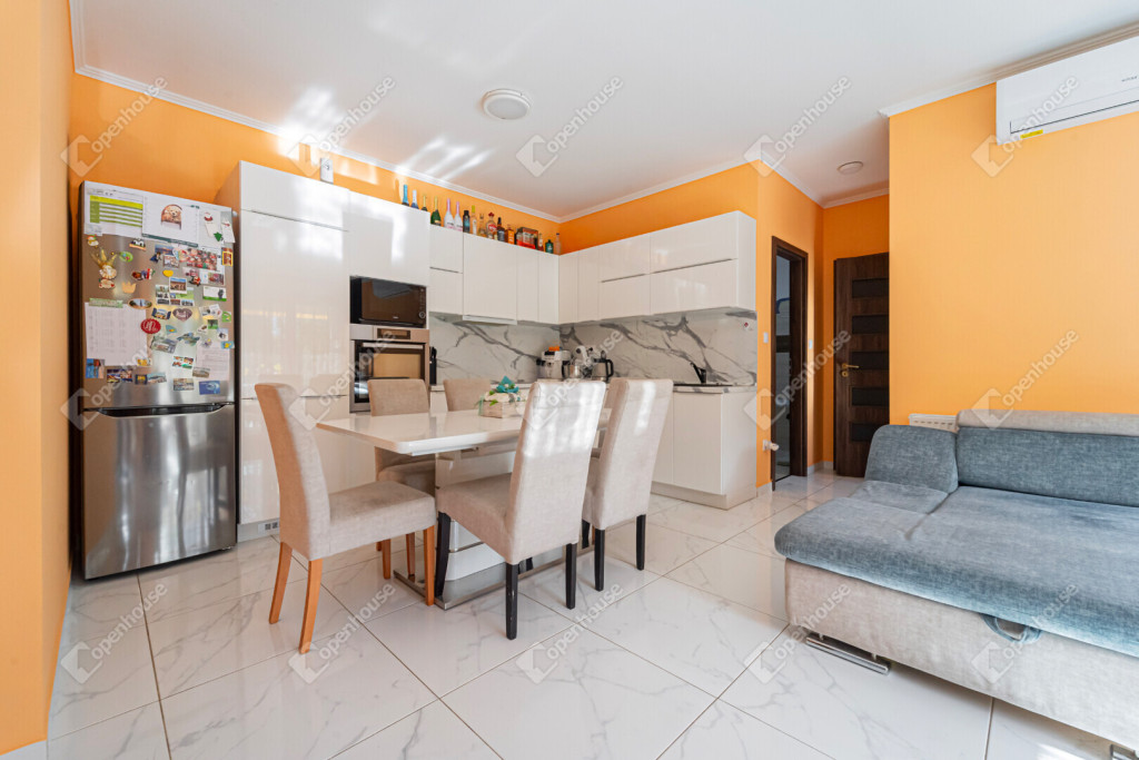 A tágas amerikai konyhás nappali az otthon központja, ahol a család és barátok együtt tölthetik a mindennapokat. A konyha természetesen beépített, gépesített konyhabútorral felszerelt, így az új tulajdonosnak már csak beköltöznie kell. Három külön nyíló hálószoba biztosítja a privát tereket, így ideális választás családoknak vagy akár otthoni irodát keresőknek is.