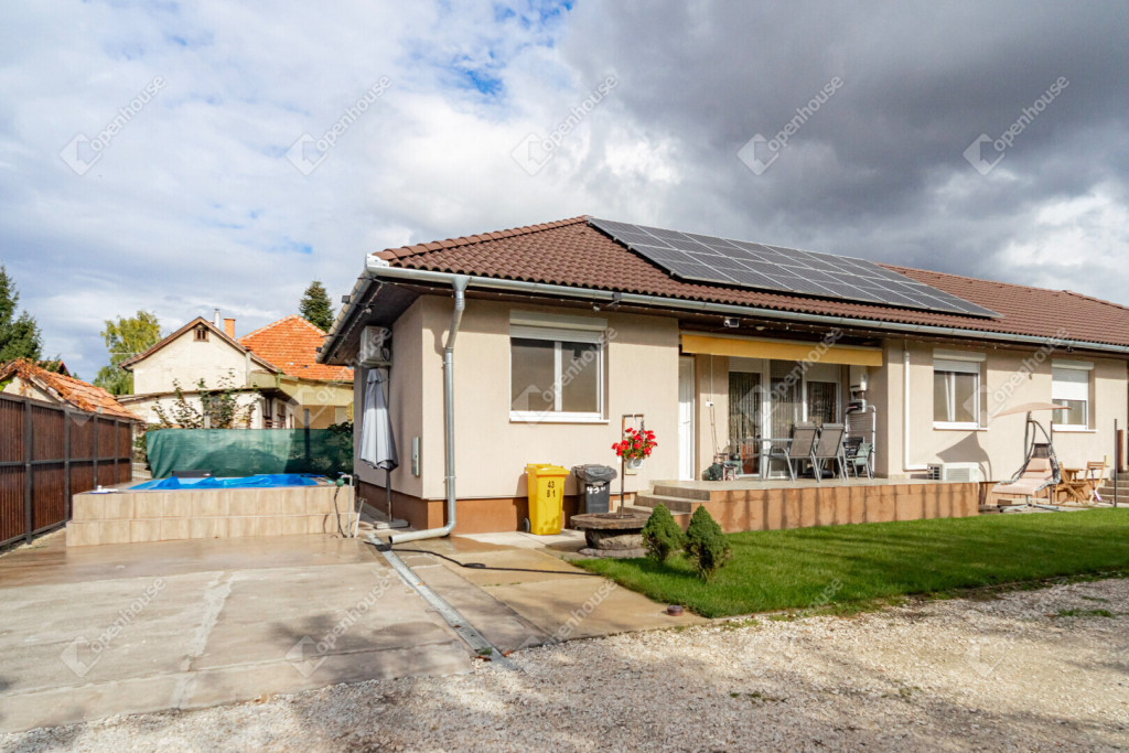 Az ingatlan műszaki felszereltsége is kiemelkedő: a 6,37 kW teljesítményű, szaldós elszámolású napelemes rendszernek köszönhetően a rezsiköltség rendkívül alacsony. Az erős, 3×25A elektromos kapacitás minden igényt kielégít, míg a minden szobában elhelyezett klímaberendezés gondoskodik az egész éves kényelemről.