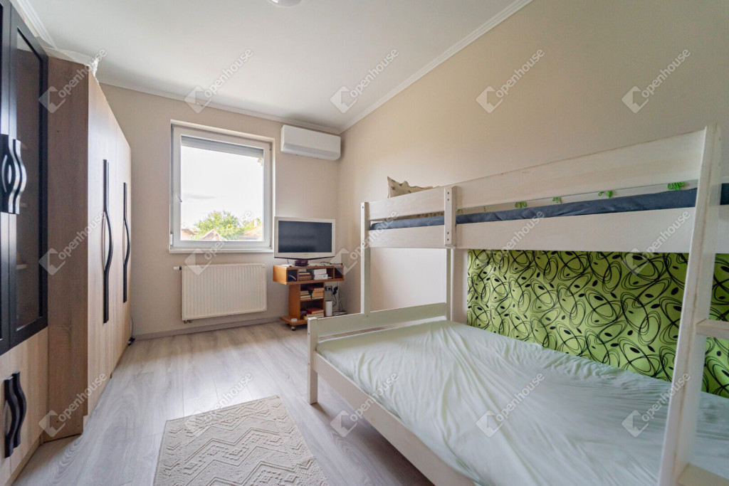 A lakáshoz tartozik egy fedett gépkocsibeálló, amely megvédi autóját az időjárás viszontagságaitól, valamint egy külön kinti tároló, ami praktikus helyet biztosít a kerti eszközöknek vagy sportfelszereléseknek. A saját kertben pedig bőven van hely a kikapcsolódásra, játékra vagy akár egy hangulatos terasz kialakítására is. Az erős, 3×25A elektromos kapacitás minden igényt kielégít, míg a minden szobában elhelyezett klímaberendezés gondoskodik az egész éves kényelemről.