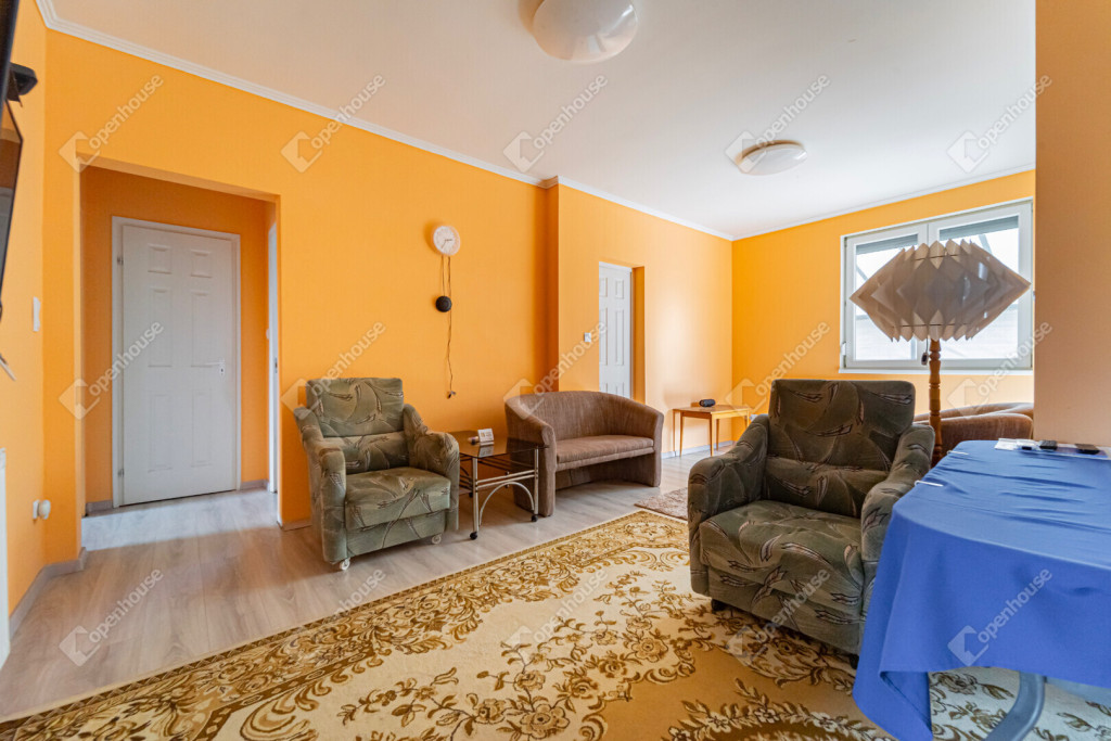 A lakás belső tere minden igényt kielégít: a hatalmas amerikai konyhás nappali a központi élettér, ahol a család és a barátok is kényelmesen összegyűlhetnek. A nappali mellett három külön nyíló hálószoba biztosítja a privát szférát, így ideális megoldás nagyobb családnak, otthoni irodát keresőknek vagy akár vendégszobának is.