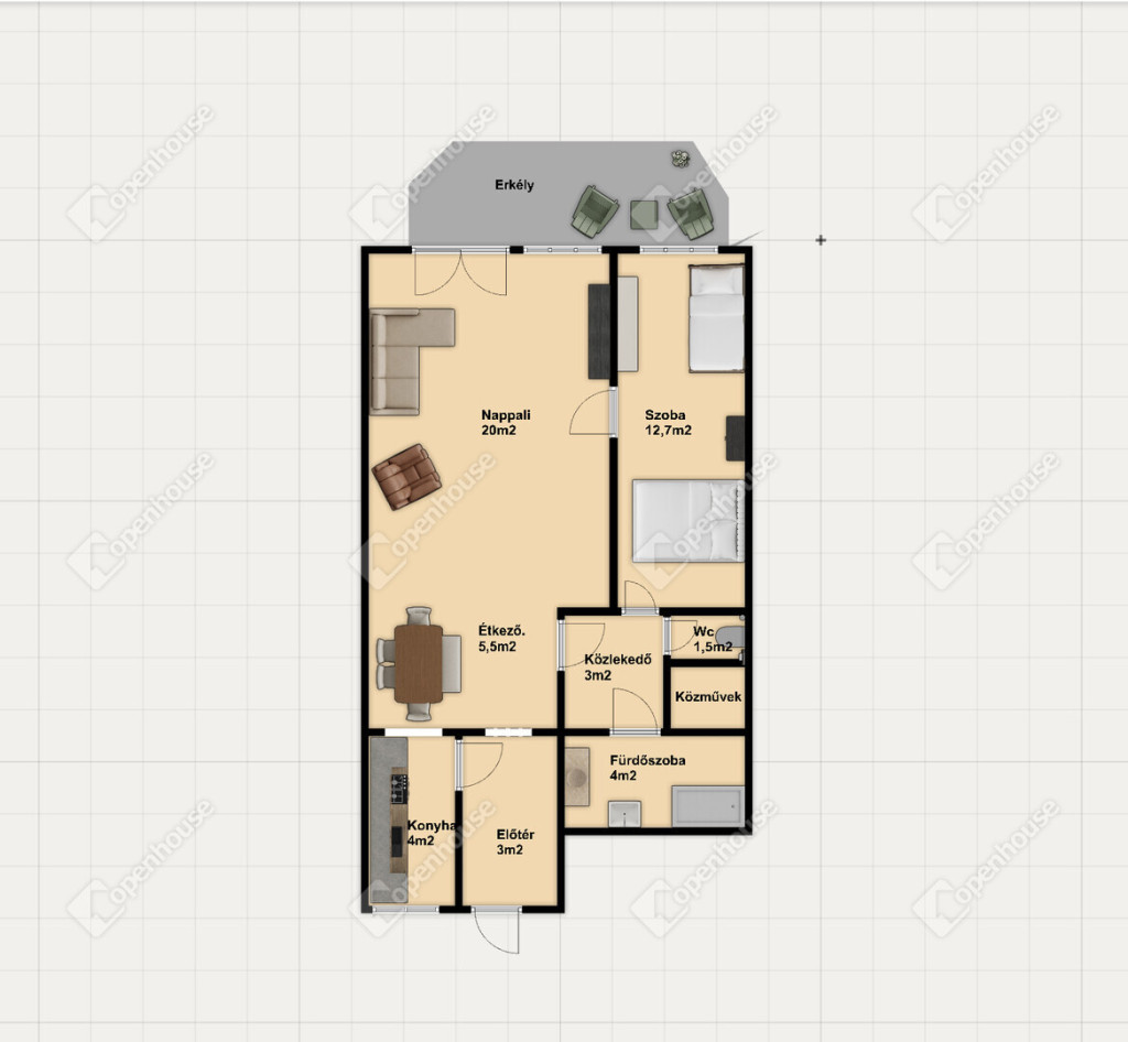 Tágas terek: A két külön nyíló szoba (nappali + kényelmes hálószoba) világos és jól rendezhető.