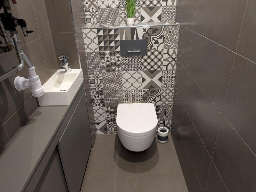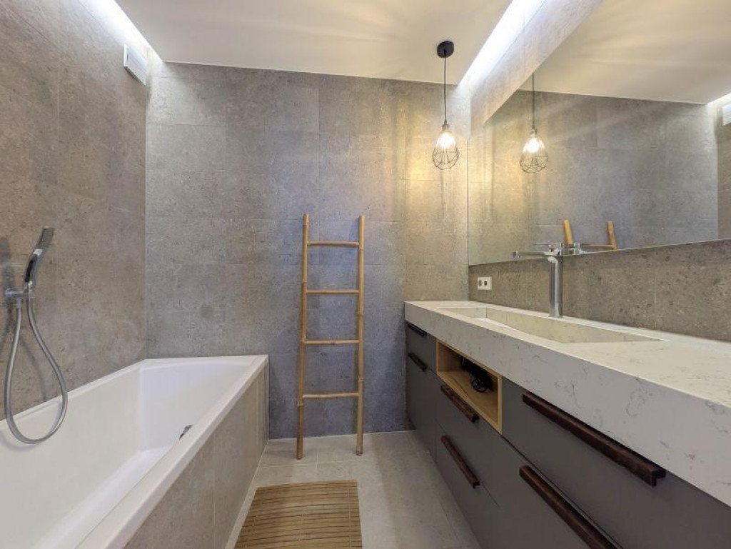 Prémium anyaghasználat: kő mosdó, greslap burkolatok, minőségi vasalatok.
