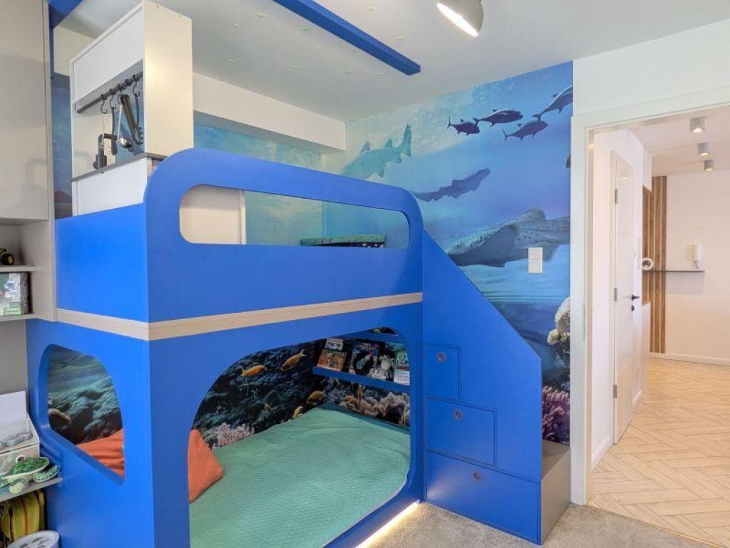 A belső terek kialakításakor az Emett Design csapata alkotta meg a maximális funkcionalitást: az előszobától a hálószobáig mindenhol egyedi, méretpontos bútorok segítik a rendszerezést. A konyha és a nappali egy légtérben kapott helyet, közvetlen kijárással a gigantikus teraszra, mely szinte „második nappaliként” funkcionál tavasztól őszig.