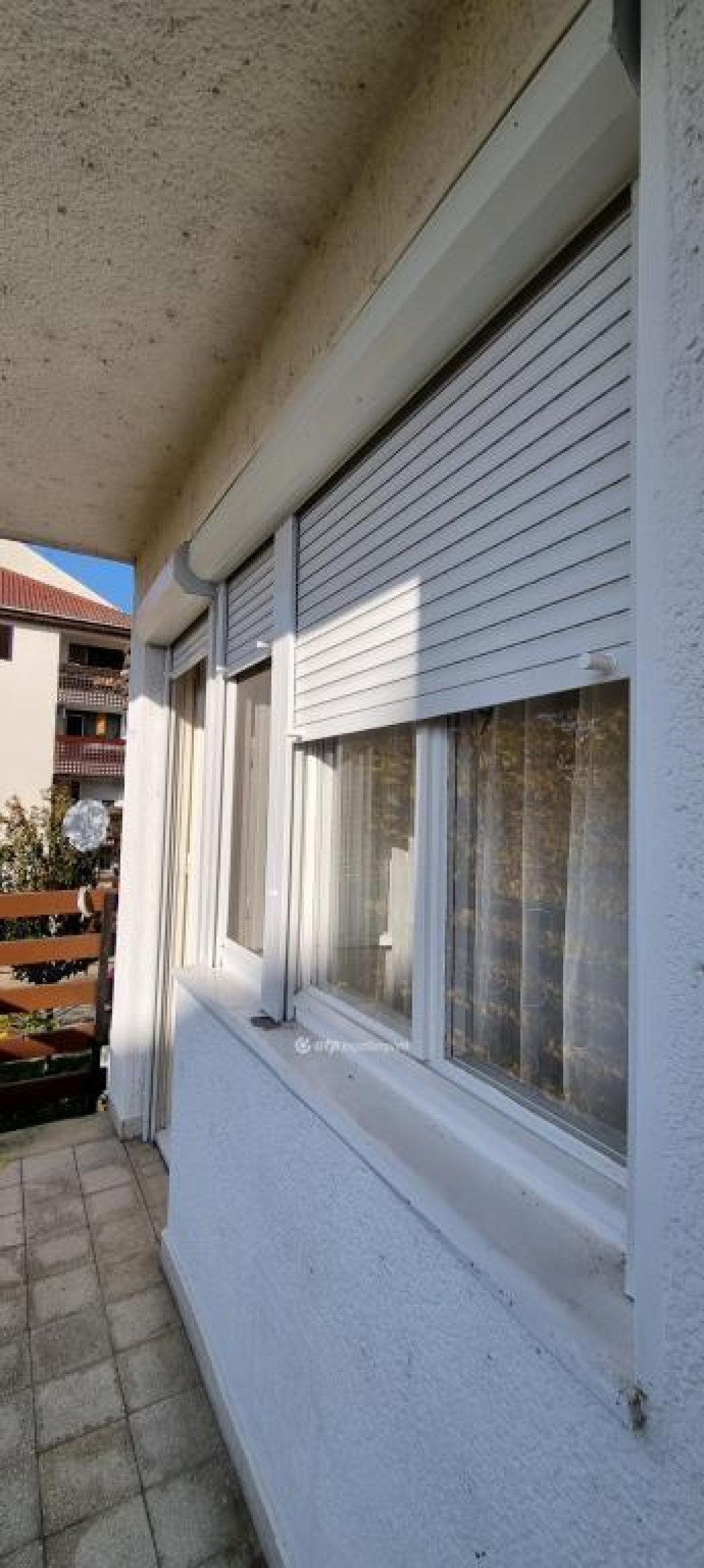 Az ingatlan a téglából épült társasház első emeletén található.