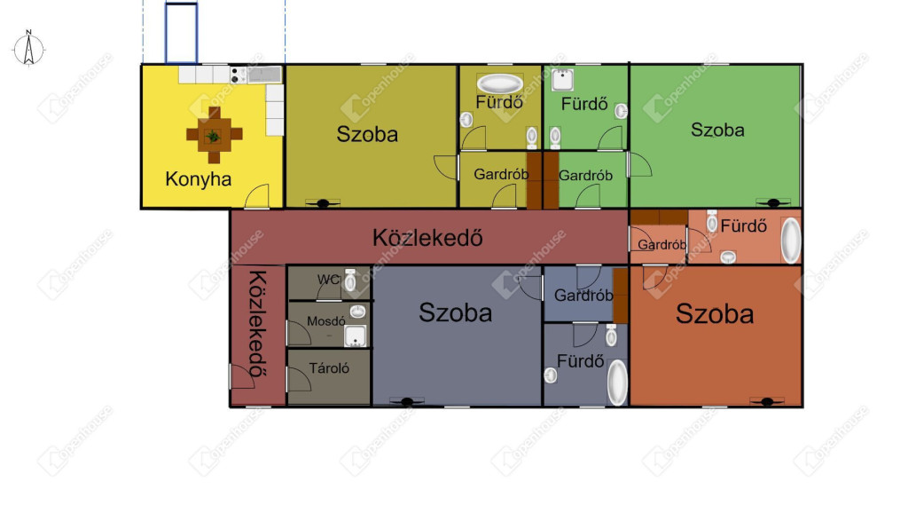 96 m², 4 különálló, önálló fürdőszobás szoba