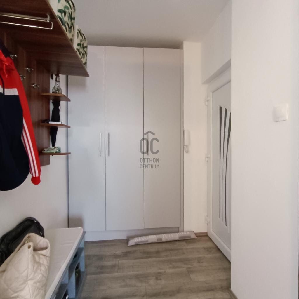 - felosztása: konyha, étkező-nappali, 1 hálószoba, amely erkélykapcsolatos, közlekedő, beépített szekrény, fürdő, külön WC, tároló