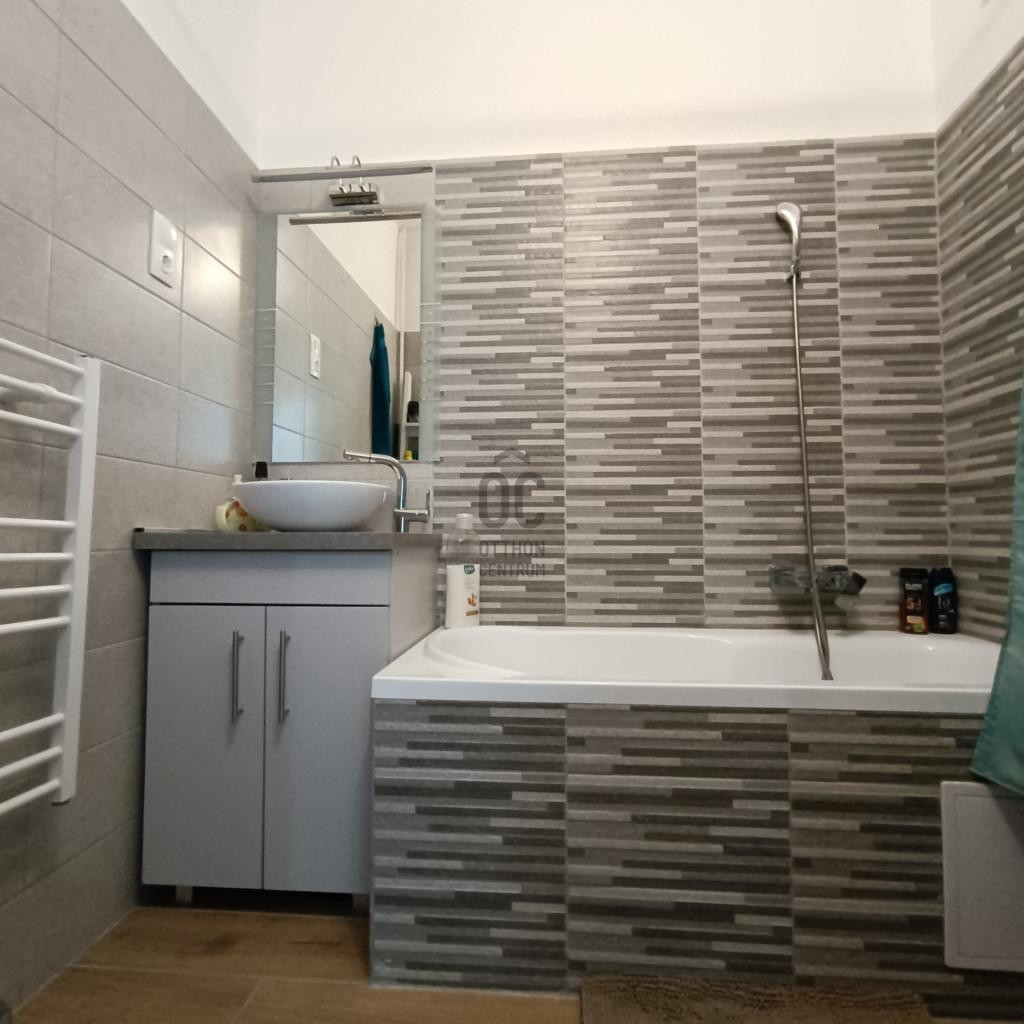 - felosztása: konyha, étkező-nappali, 1 hálószoba, amely erkélykapcsolatos, közlekedő, beépített szekrény, fürdő, külön WC, tároló