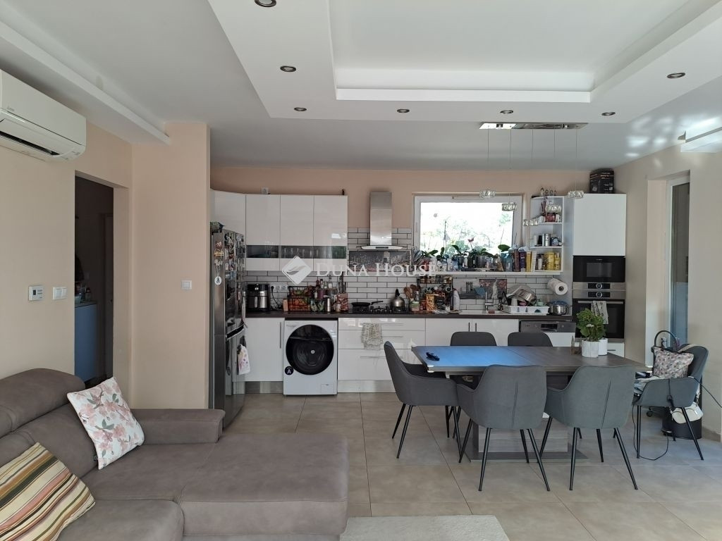 Nagytarcsa egyik kedvelt, csendes részén kínáljuk megvételre ezt a 2018-ban épült, újszerű állapotú ikerházfelet. Az ingatlan modern kialakításának és igényes kivitelezésének köszönhetően kiváló választás lehet mind családok, mind fiatal párok számára.Az ingatlan elosztása átgondolt és praktikus: két külön nyíló hálószoba, világos amerikai konyhás nappali, külön WC, valamint fürdőszoba biztosítja a kényelmes mindennapokat. A ház minőségi anyagokból épült, klímával felszerelt, így a komfort egész évben garantált.A saját, intim kertrész ideális helyet kínál kikapcsolódásra, a családi és baráti összejövetelekhez. A házhoz tartozik egy önálló garázs is, amely további kényelmet és biztonságot nyújt.Az ingatlan elhelyezkedése tökéletes: Nagytarcsa központja könnyen elérhető, a főváros közelsége pedig gyors közlekedést biztosít, így a nyugodt kertvárosi élet és a város közelsége egyszerre élvezhető.