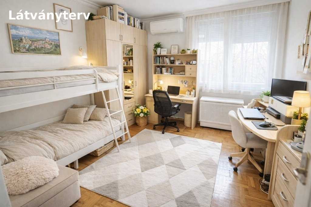 A hirdetésben szereplő képek között látványtervek is megtalálhatók, amelyek segítenek bemutatni az ingatlanban rejlő további lehetőségeket és a berendezési potenciált.