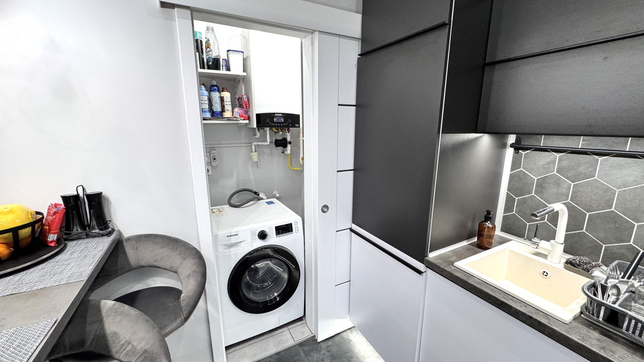 Beépített, gépesített konyhabútor.