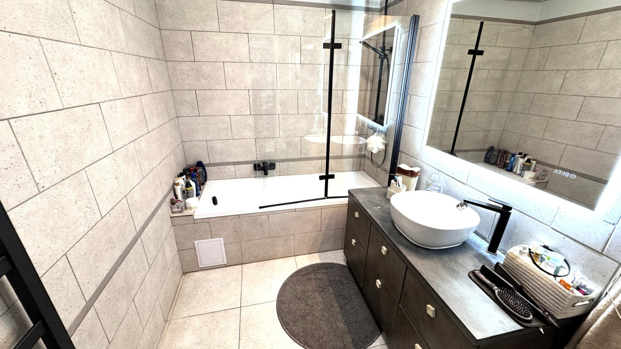 Tágas, kádas fürdőszoba.