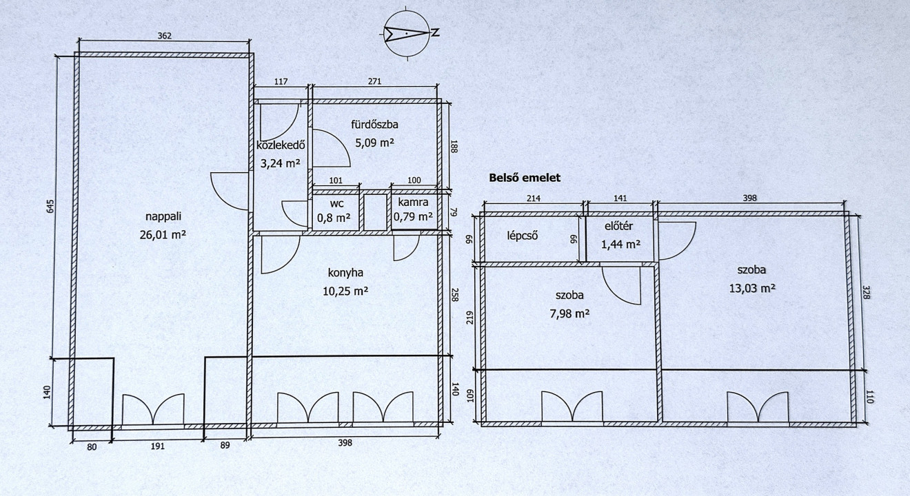 Felső szint: 22 m².