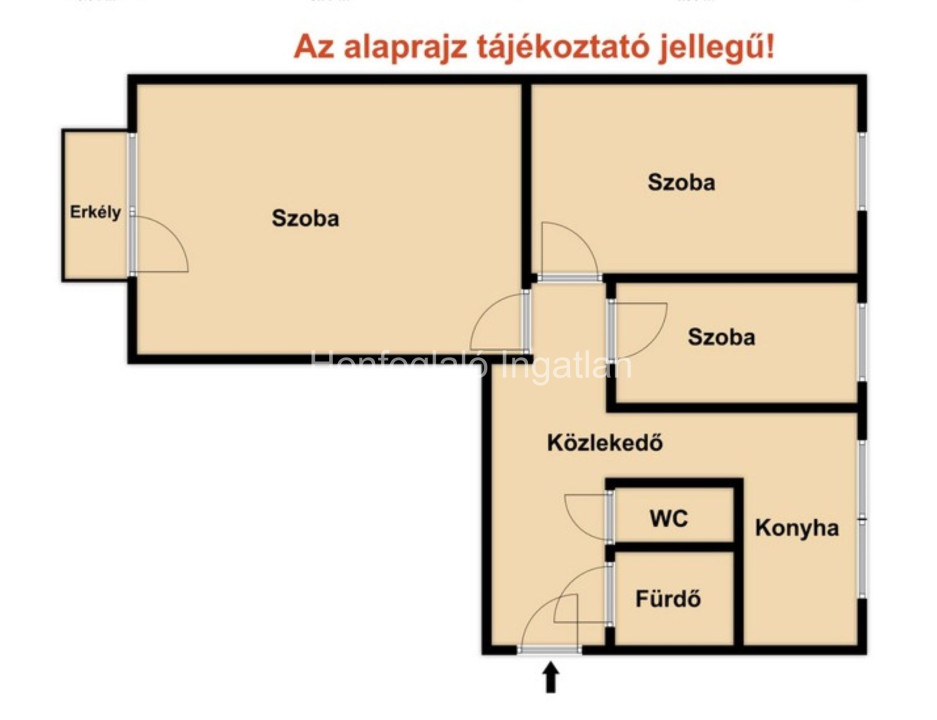 Az ingatlan elrendezése rendkívül praktikus: három külön nyíló szoba, tágas konyha, fürdőszoba, külön WC, valamint egy modern bútorozott közlekedő kapott helyet.