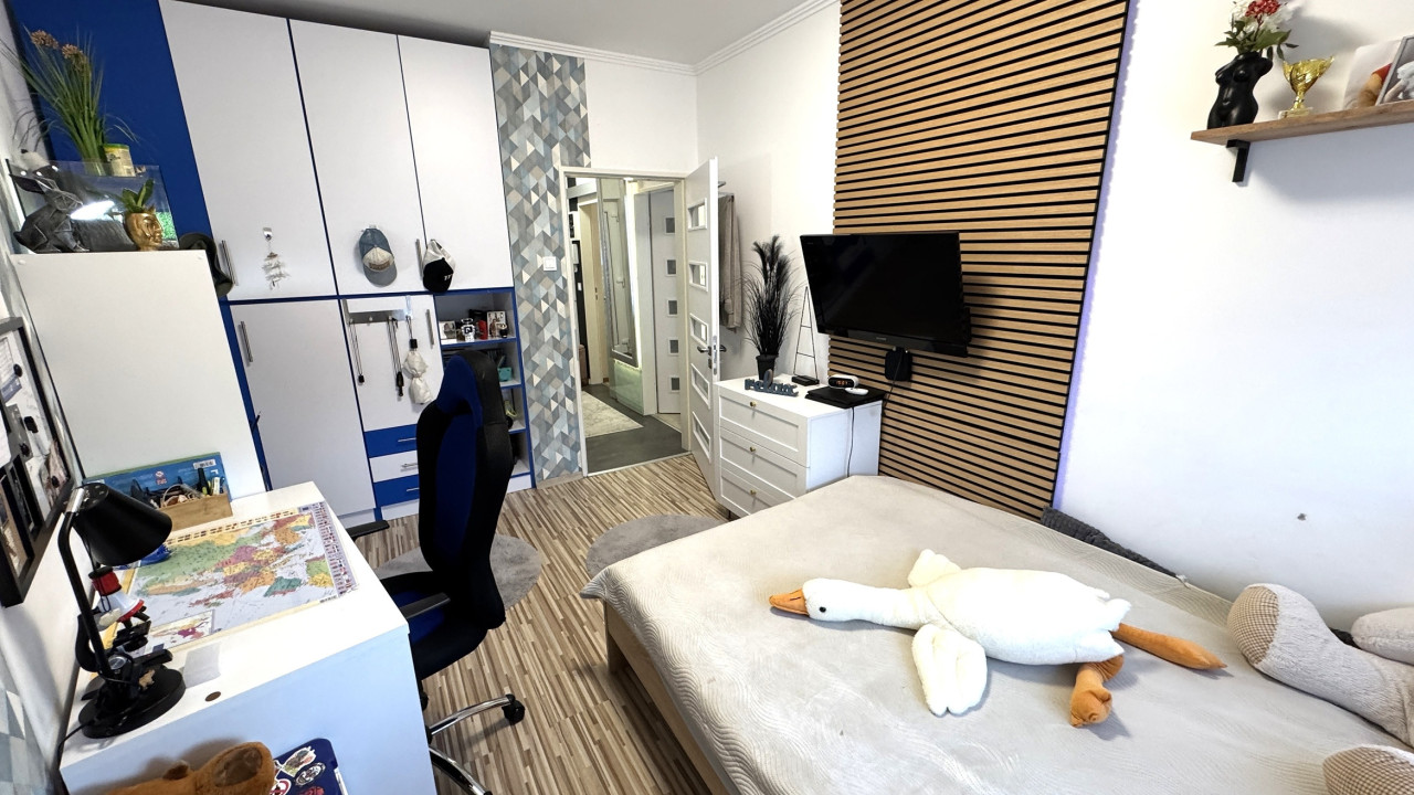 Tágas és funkcionális: 2 különálló hálószoba, beépített gardróbszekrények, közös tároló, külön fürdőszoba és WC.