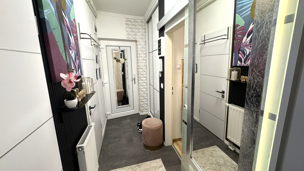 Elrendezés: Előszoba, amerikai konyha-nappali ( erkéllyel összekötve), 2 különálló hálószoba, fürdőszoba és külön WC.
