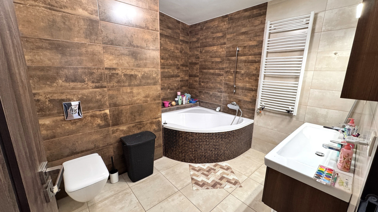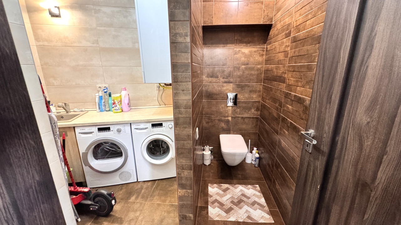 Dupla komfortos: tágas kádas fürdőszoba-wc, valamint zuhanyzó-wc mosókonyha,– funkcionalitás és stílus.