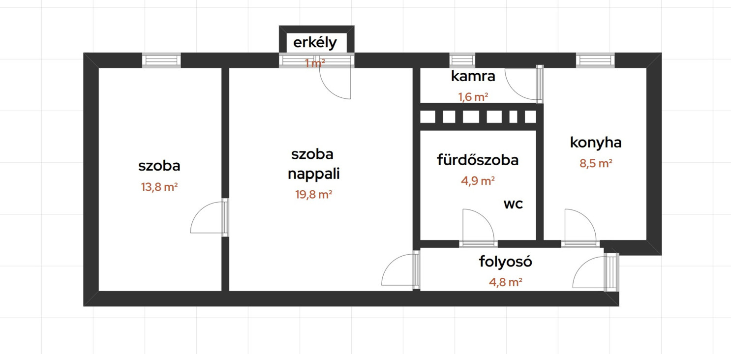 Méret: 51 m² (+ 1 m² erkély).