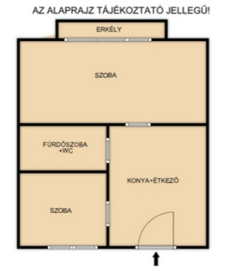 Elosztás: nagyszoba erkélykapcsolattal, félszoba, konyha + étkező, fürdőszoba + WC egyben