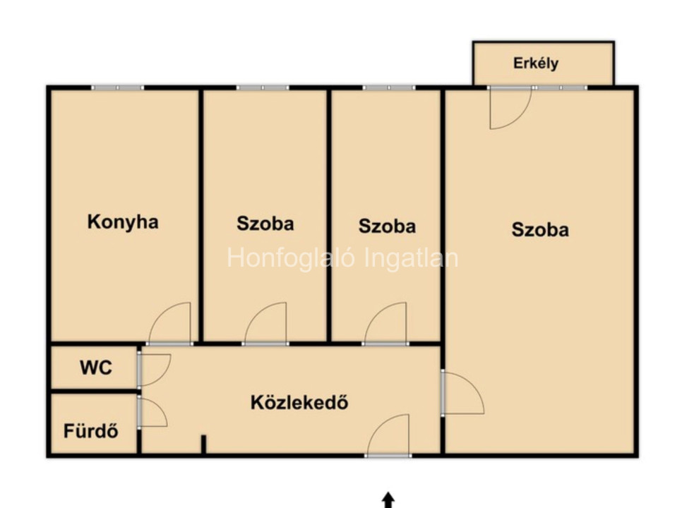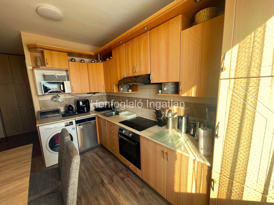 A lakás rendkívül jó elrendezésű, három külön nyíló szoba, szép világos konyha, fürdőszoba, külön WC, valamint egy végig bútorozott közlekedő található benne.