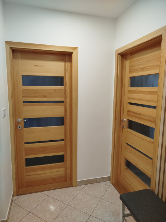 - a szobák laminált padlót és egyedileg gyártott, tömör, borovi fenyő ajtókat kaptak;