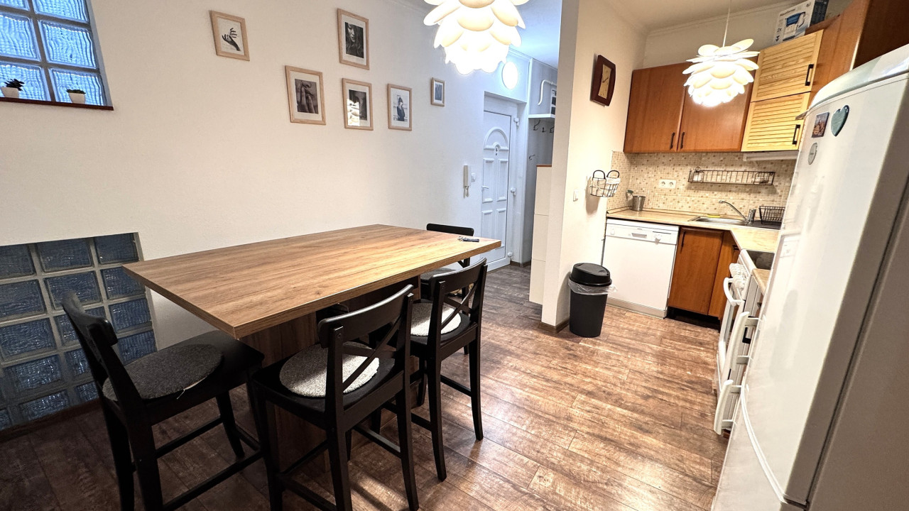 A társasház zárt, parkosított belső udvarral rendelkezik, elektromos kapuval, így a lakás és a parkolás is biztonságos. Az ablakok csendes udvarra néznek, valódi belvárosi nyugalmat biztosítva.