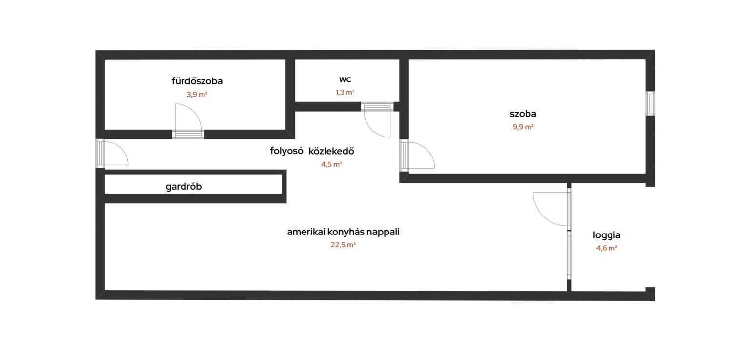 Alapterület: (42 m²) + 5 m² loggia.