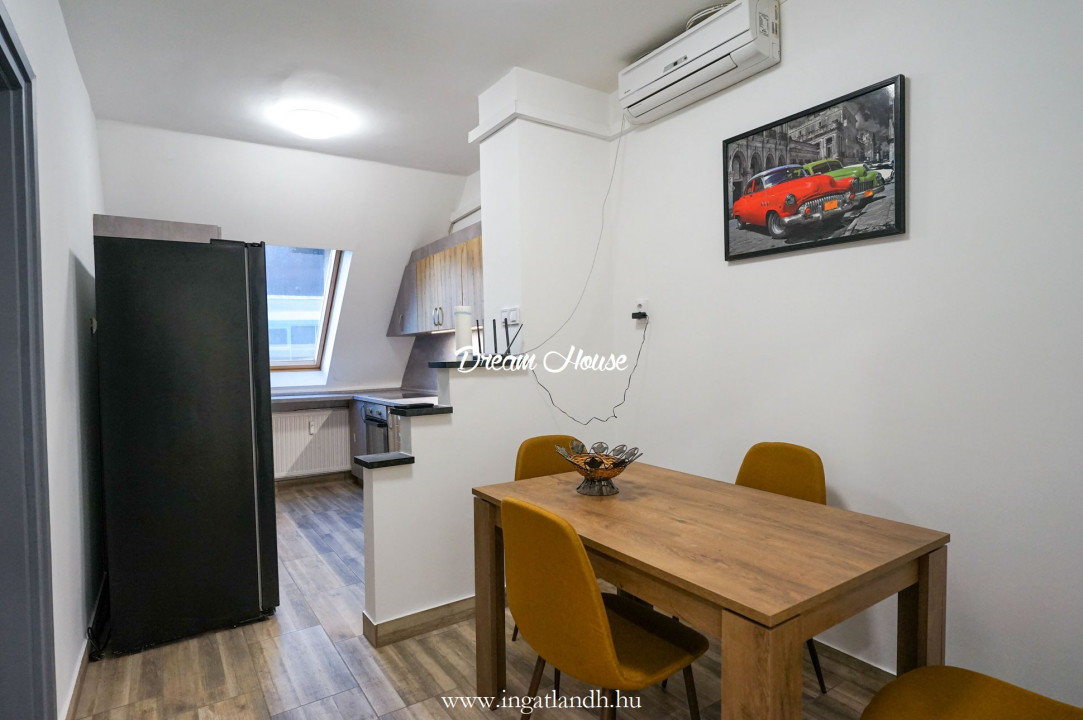 A lakás 50/58 m² alapterületű, klimatizált, 1 szoba + konyhás, és teljes körűen berendezve, gépesítve kerül átadásra.