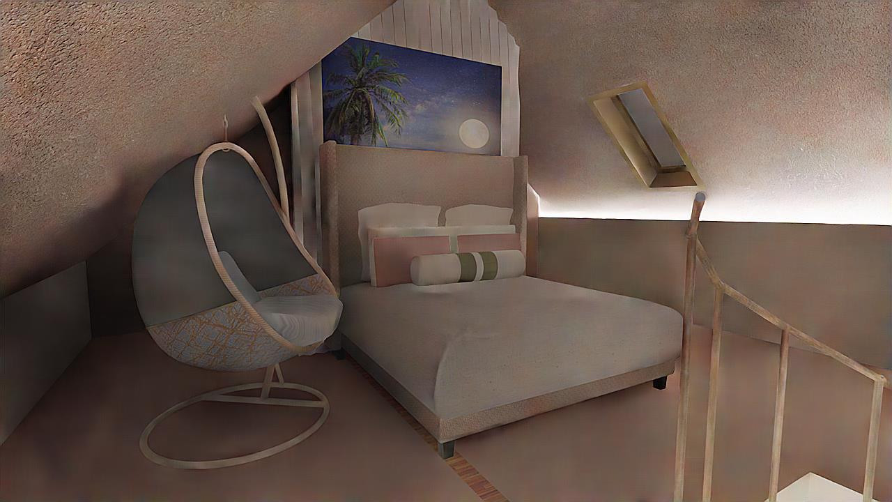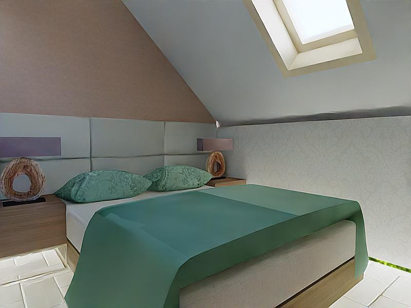 A második szinten tágas hálószoba, gardrób, fürdőszoba-mellékhelyiséggel.