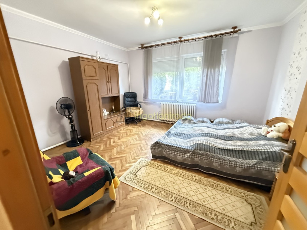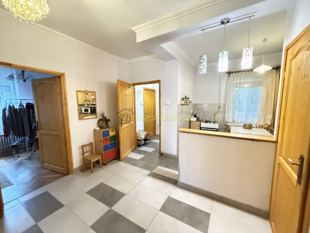 Nyíregyháza Kertvárosban eladó egy 2 lakásos társasházban található földszinti, kertkapcsolatos, 85 m2 hasznos alapterültű lakás, amely igazi otthon lehet új tulajdonosának.A lakásba belépve egy praktikus előtér fogad, ahol kényelmesen letehetjük a cipőt és felakaszthatjuk a kabátot. Jobbra található a spájz, amely tulajdonképpen pinceként funkcionál, mivel lépcső vezet le a lakás alatti tágas tárolóhoz.Az előtérből egy tágas központi térbe érkezünk, amely akár nappaliként is használható. Balra nyílik a praktikus konyha-étkező, a nappali térből pedig egy zuhanyzós, tágas fürdőszoba és külön WC. A mellékhelyiségek ajtói akadálymentesítettek, ami nagyban növeli a lakás kényelmét és használhatóságát.A nappaliból három nagy méretű szoba nyílik, így a lakás családok számára is kiváló választás.A házhoz garázs, tároló és gondozott kert is tartozik, amely kellemes lehetőséget nyújt pihenésre és kikapcsolódásra.Kinek ajánljuk?családoknak, akik szeretnének tágas, kertkapcsolatos otthonban élni,mindazoknak, akik értékelik a jó elosztású, praktikus tereket,valamint azoknak, akik akadálymentesített otthont keresnek – a lakás kialakítása és múltja miatt különösen alkalmas lehet olyan családoknak vagy idős korosztálynak, gondozóknak, akik fogyatékkal élő szeretteik számára keresnek biztonságos és kényelmes otthont.Ez a kertvárosi ingatlan a nyugodt környezetet és a város közelségét ötvözi, valódi otthonként szolgálva a következő tulajdonosának.Irodánk immár 25 éve dolgozik azon, hogy ügyfeleink a legmegfelelőbb ingatlant találják meg. A közvetítés vevőink számára ingyenes, igény esetén hitel- és CSOK-tanácsadással is állunk rendelkezésre.Az ingatlan megfelel a jelenlegi 3%-os hitelkonstrukciónak.Irodai azonosító: 10223